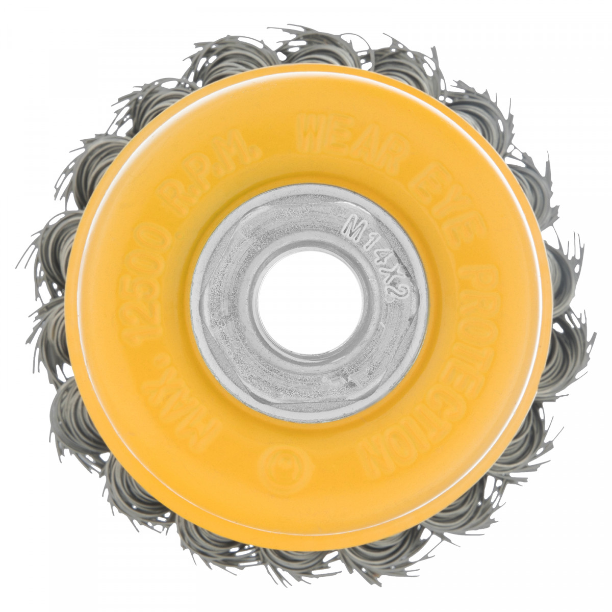 Щетка для УШМ, 75 мм, "Чашка", крученая нержавеющая проволока 0.5 мм, М14 Denzel
