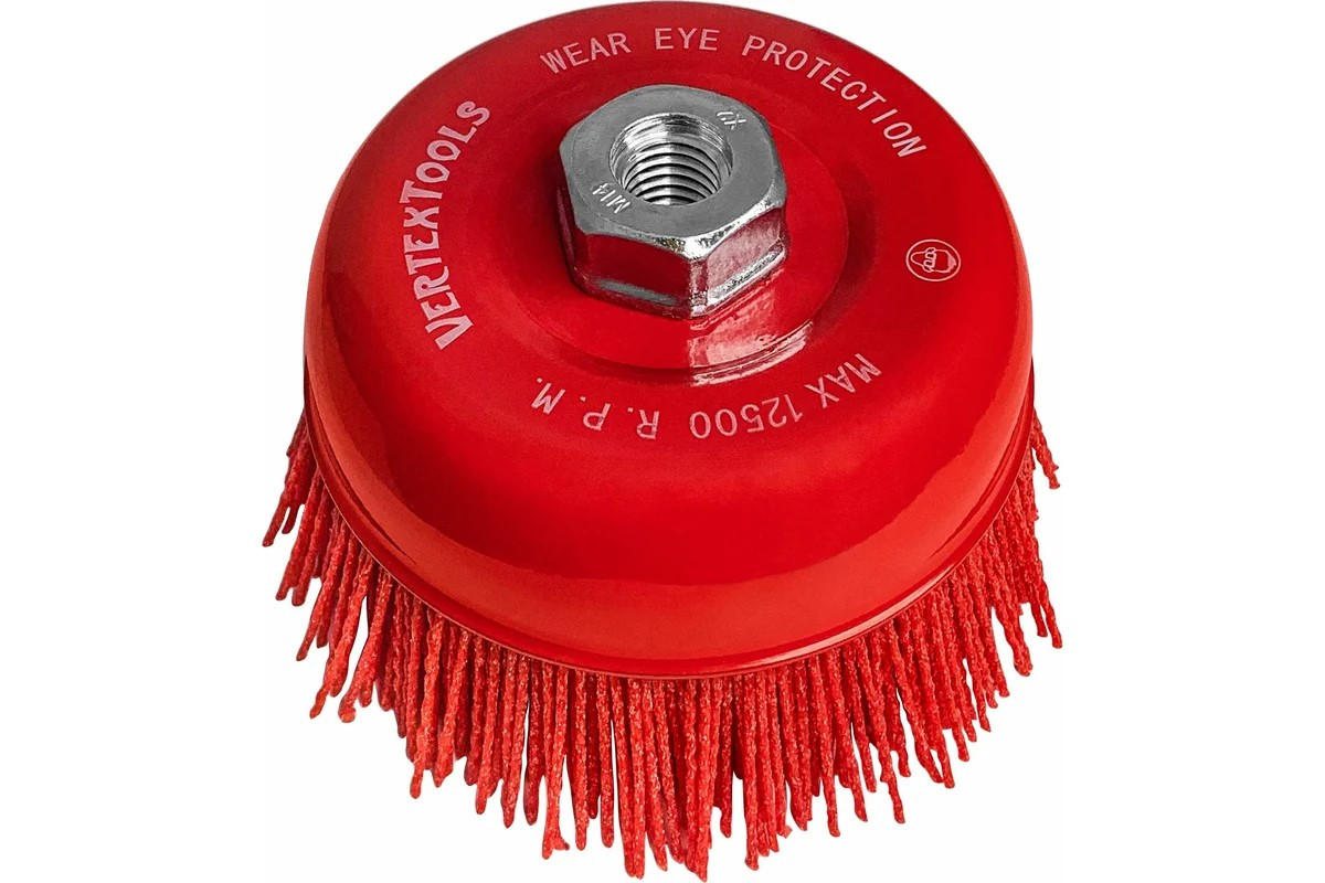 Щетка нейлоновая для УШМ , 75 ММ, М14, чаша VERTEXTOOLS