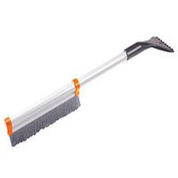 Телескопическая усиленная рукоятка из алюминиевого с функцией установки фиксированной длины. Поворотная голова с фиксацией в 5 положениях с металлическим основанием. Густая распушенная щетина для бережной очистки снега с поверхности. Мощный скребок с зубьями для дробления льда. Мягкий водосгон для удаления воды и талого снега со стекол.