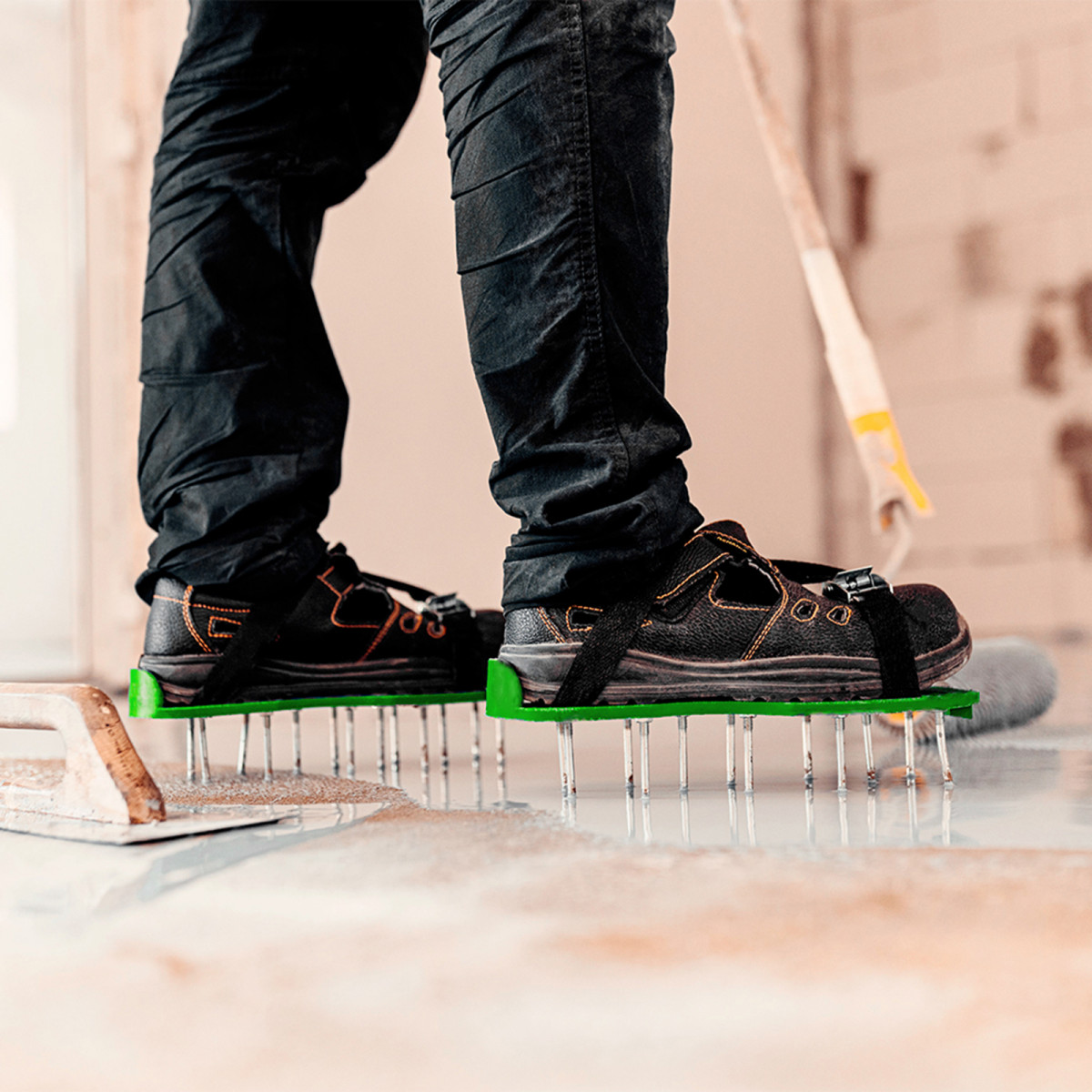 Шипованные насадки на обувь Сибртех 81109 предназначены для перемещения по непросохшему наливному полу. Шипы исключают повреждение свеженалитой поверхности и позволяют получить прочное и красивое напольное покрытие. Они выполняют роль дополнительного аэратора, эффективно устраняя оставшиеся в полимере пузырьки воздуха.