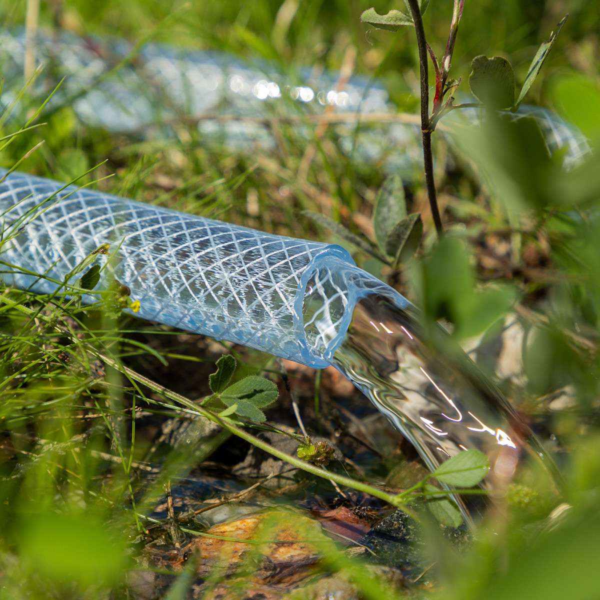- Повышенная прочность — шланг изготовлен из поливинилхлорида (ПВХ) и армирован нитью из полиэстера.