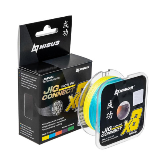 Плетеные шнуры JIG CONNECT X8 торговой марки NISUS созданы по японским технологиям из специальных высокомодульных полиэтиленовых микроволокон с плотным плетением.