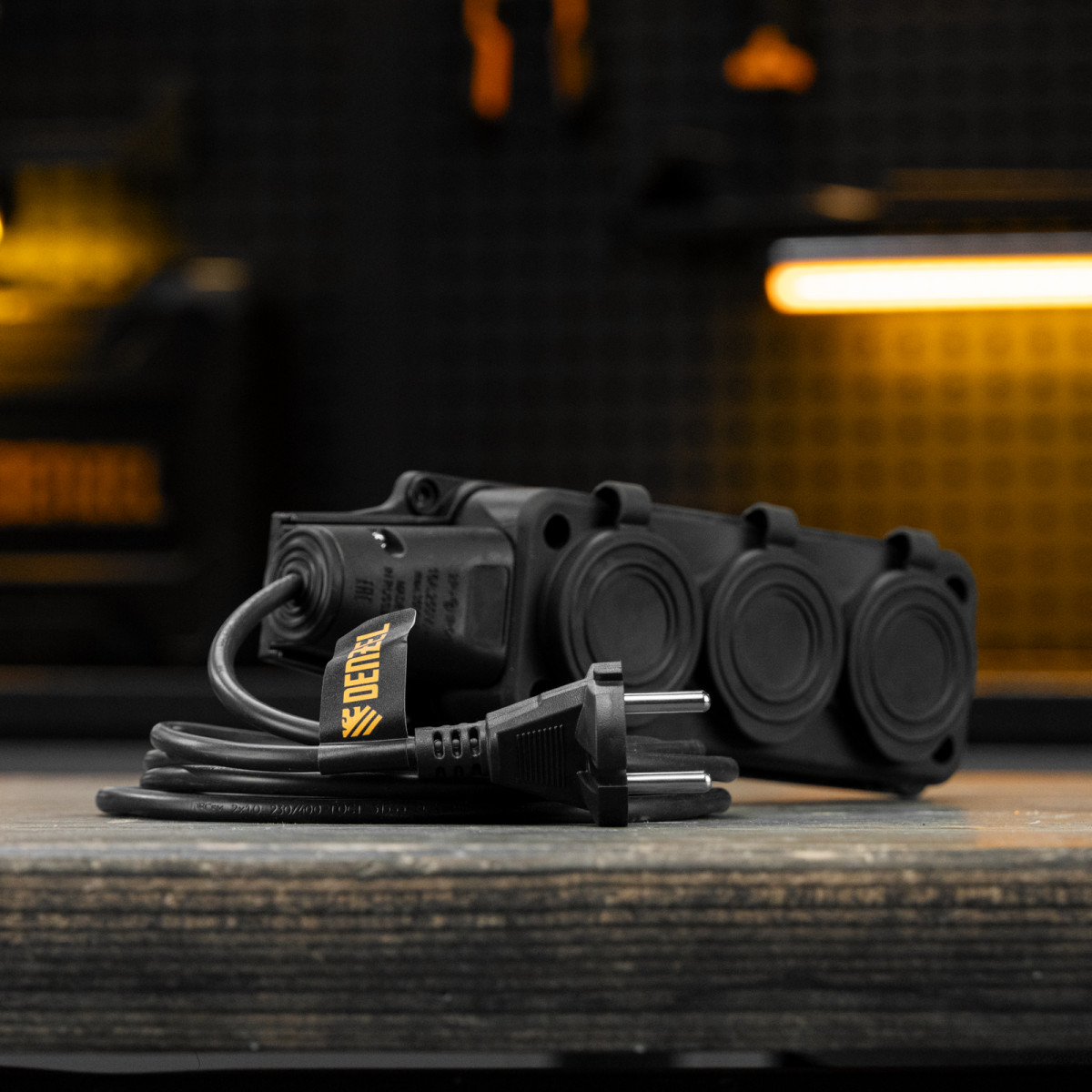 Шнур сетевой Energy Series, ПВС, 3 м, 2 x 1,5 мм, с неразборной вилкой, черный, Denzel