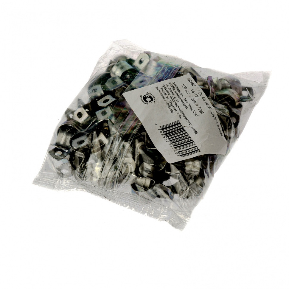 Двухлапковая металлическая скоба (СМД) Сибртех 48190 диаметром 16 мм, 100 шт. в комплекте, используется для крепления труб, проводов и шлангов на различных строительных конструкциях, имеющих 2 параллельных ряда крепежных отверстий. Обеспечивает надежную фиксацию даже под воздействием сильных вибраций и сдвигающих нагрузок.