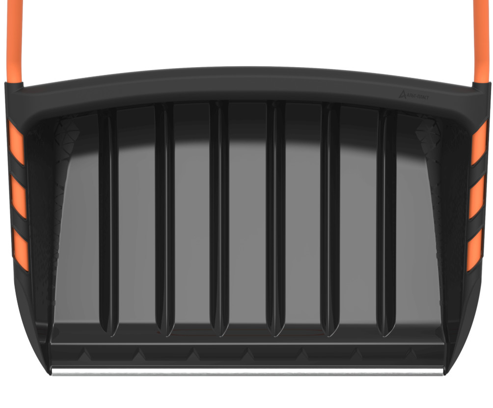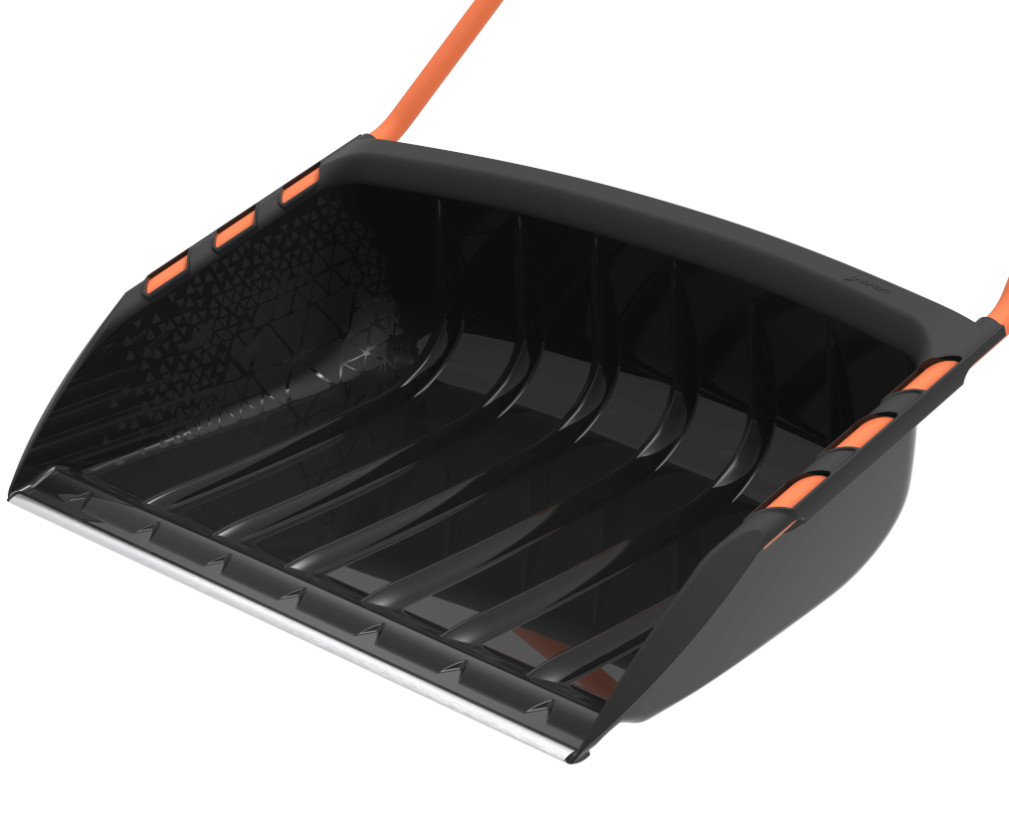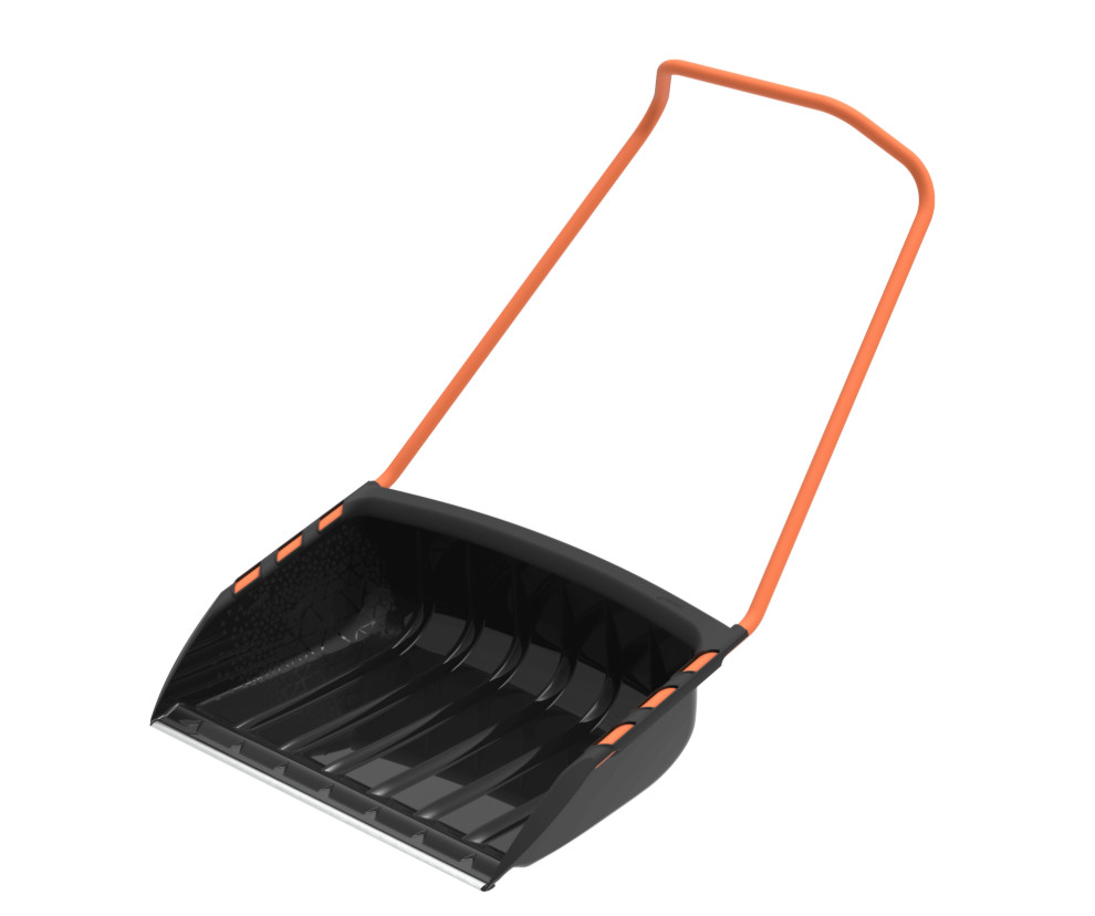 Скребком убирают большие территории. Им быстрее очистить участок, дорогу или подъезд к гаражу, чем лопатой. У скребка есть рёбра, которые приподнимают рабочую кромку над неровностями. Скрепер усилен планкой из алюминиевого сплава, которая защищает от ударов. Снег не вывалится из скребка, у него высокие борта. Задний борт усилен, в него можно упереться ногой. Изготовлен из морозостойкого и ударопрочного материала. Выдержит Сибирские морозы, и не сломается, если упереться в твёрдые камни. У него эргономичная стальная ручка, скрепер удобно толкать вперед.