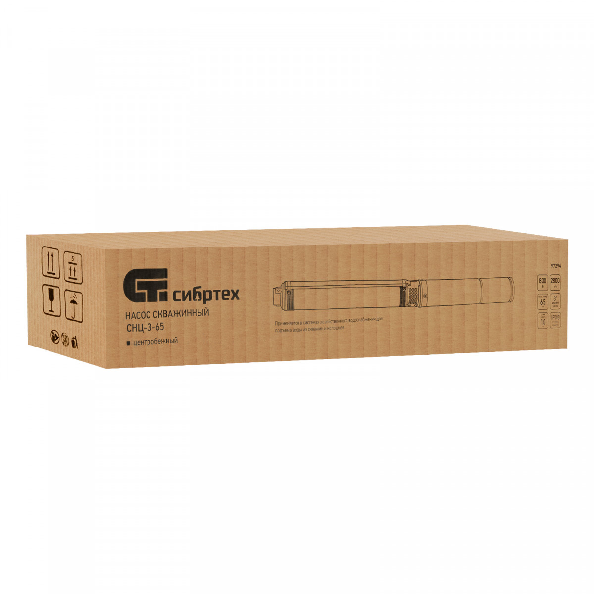 Скважинный насос CНЦ-3-65, центробежный, диаметр 3", 800 Вт, 2800 л/ч, напор 65 м Сибртех