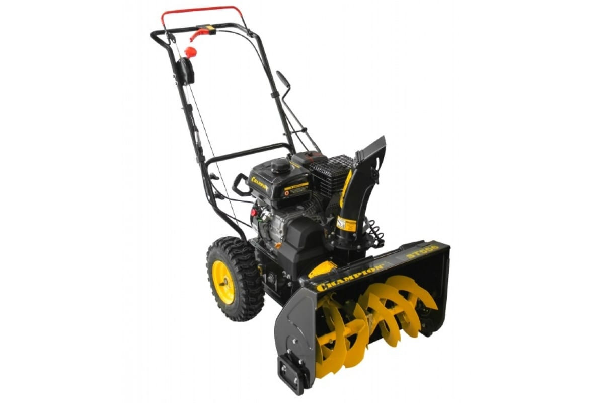 Снегоуборщик Champion ST556 с приводом на колеса эффективен для уборки большого количества снега. Оборудован двигателем с OHV, который обеспечивает быстрый запуск и экономию топлива. Высоту ковша можно регулировать при помощи специальных лыж. Зазубренный шнек измельчает даже слежавшейся снег. Желоб может вращаться в диапазоне от 0 до 180 градусов. Колеса обеспечивают достаточное сцепление с поверхностью. На верхней части ковша расположена лопатка для очистки желоба. Рычаг переключения передач находится на рукоятке.