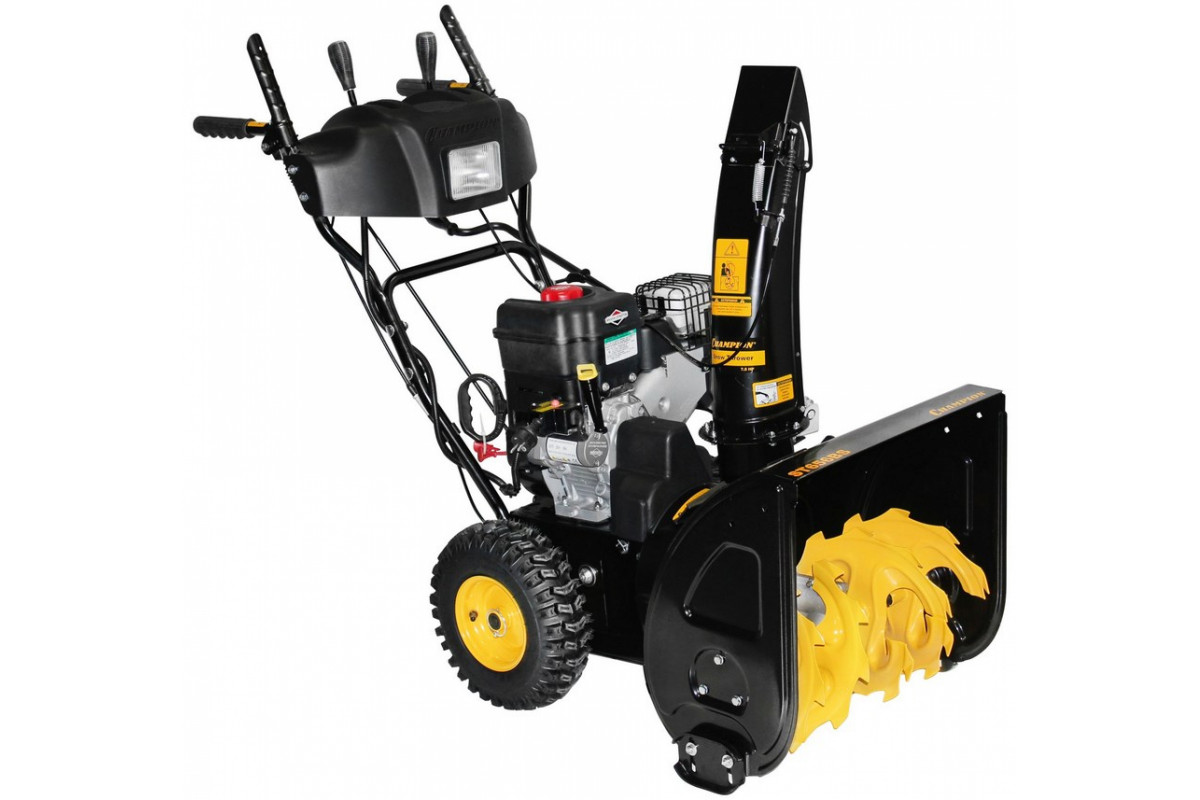 Снегоотбрасыватель Champion ST656BS имеет двухступенчатую систему шнеков. Предназначен для расчистки большой территории. Оснащен бензиновым 4-х тактным двигателем Briggs&Stratton, который характеризуется надежностью и высокой производительностью. Поворот желоба осуществляется на 180 градусов при помощи рычага. Угол выброса снега регулируется также дистанционно. Для комфортной работы в непогоду снегоуборщик оборудован фарой.