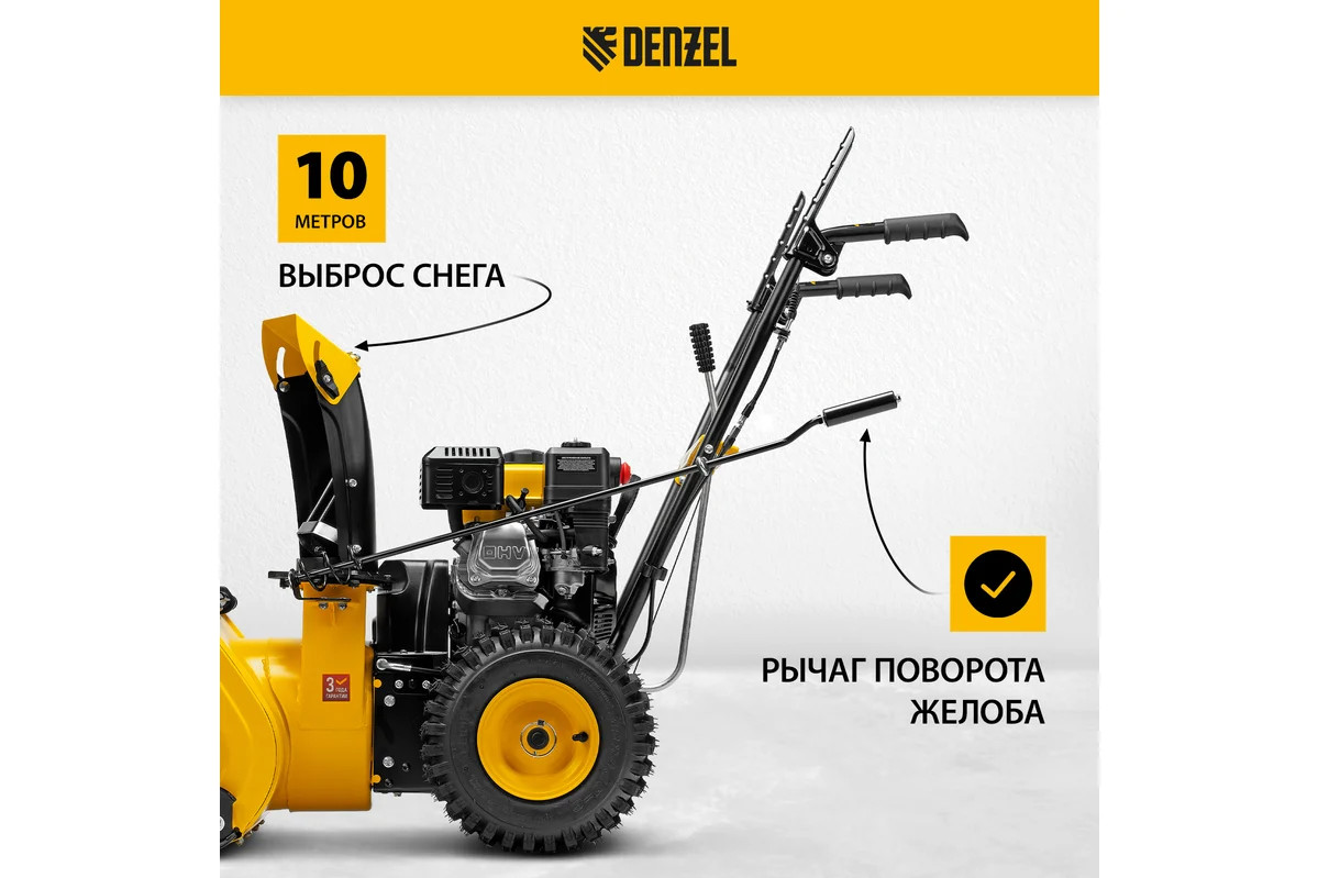 Благодаря ресурсному двигателю объемом 212 куб.см с высоким крутящим моментом снегоуборщик Denzel SB 560 эффективно убирает снег.