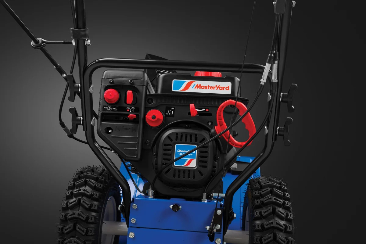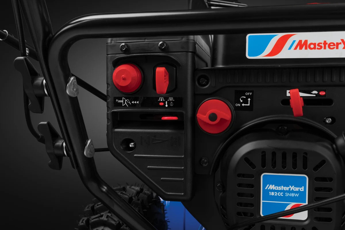 Четырехтактный бензиновый двигатель MasterYard 182cc для зимней работы. Запатентованная технология LCPower позволяет получить повышенную производительность и сниженный уровень выбросов, благодаря чему двигатель соответствует стандартам EPA Phase III и CARB. Новая камера сгорания, T-образная форма поршня и колец снижают уровень выбросов несгоревших углеводородов и предотвращают потерю мощности за счет трения. Новая система зажигания с оптимальной регулировкой опережения позволяет топливной смеси сгорать полнее, обеспечивая более высокий уровень мощности