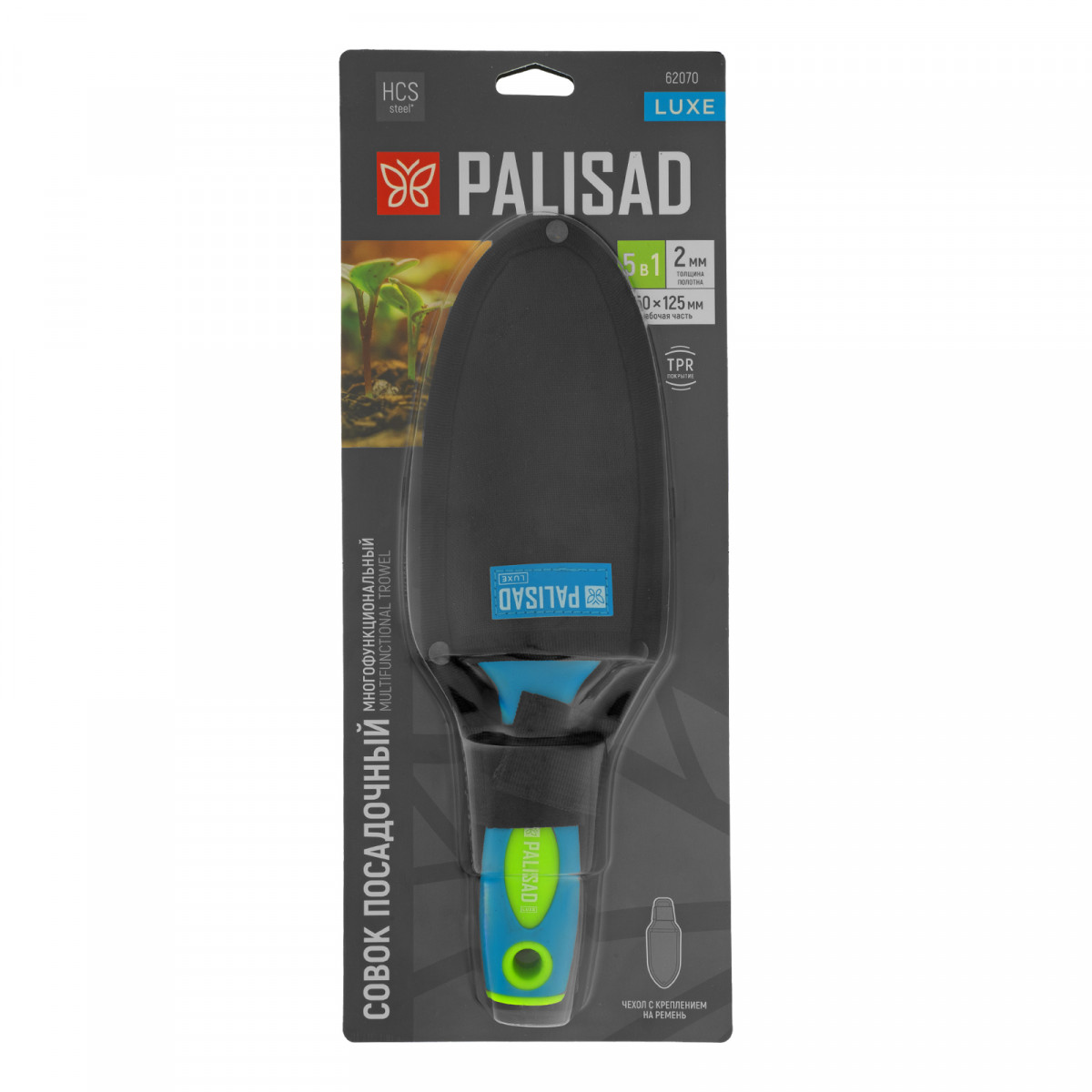 Совок посадочный многофункциональный (5 в 1) 60х285 мм, с чехлом, LUXEPalisad