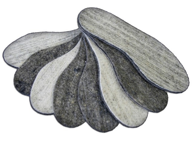 Двухслойной стелька "Арктика", состоящей из слоя ЭВА (материал ЭВА обладает нулевой теплопроводностью) и войлока полиэфирного. Стелька прекрасно сохраняет тепло при очень низких температурах, что немаловажно для удобства ноги.