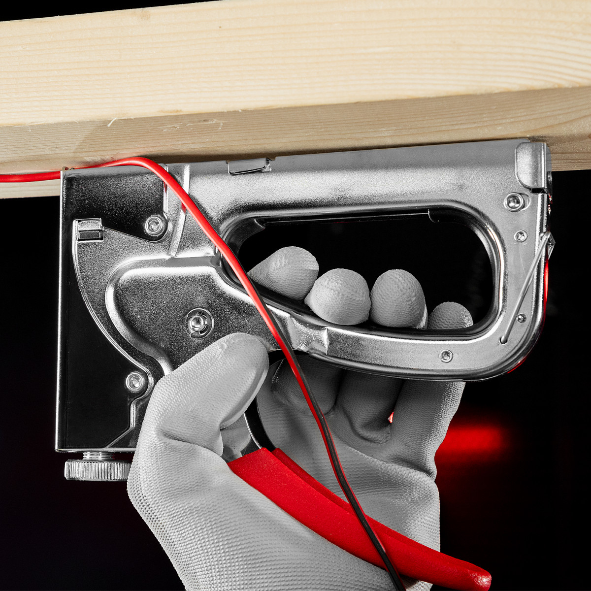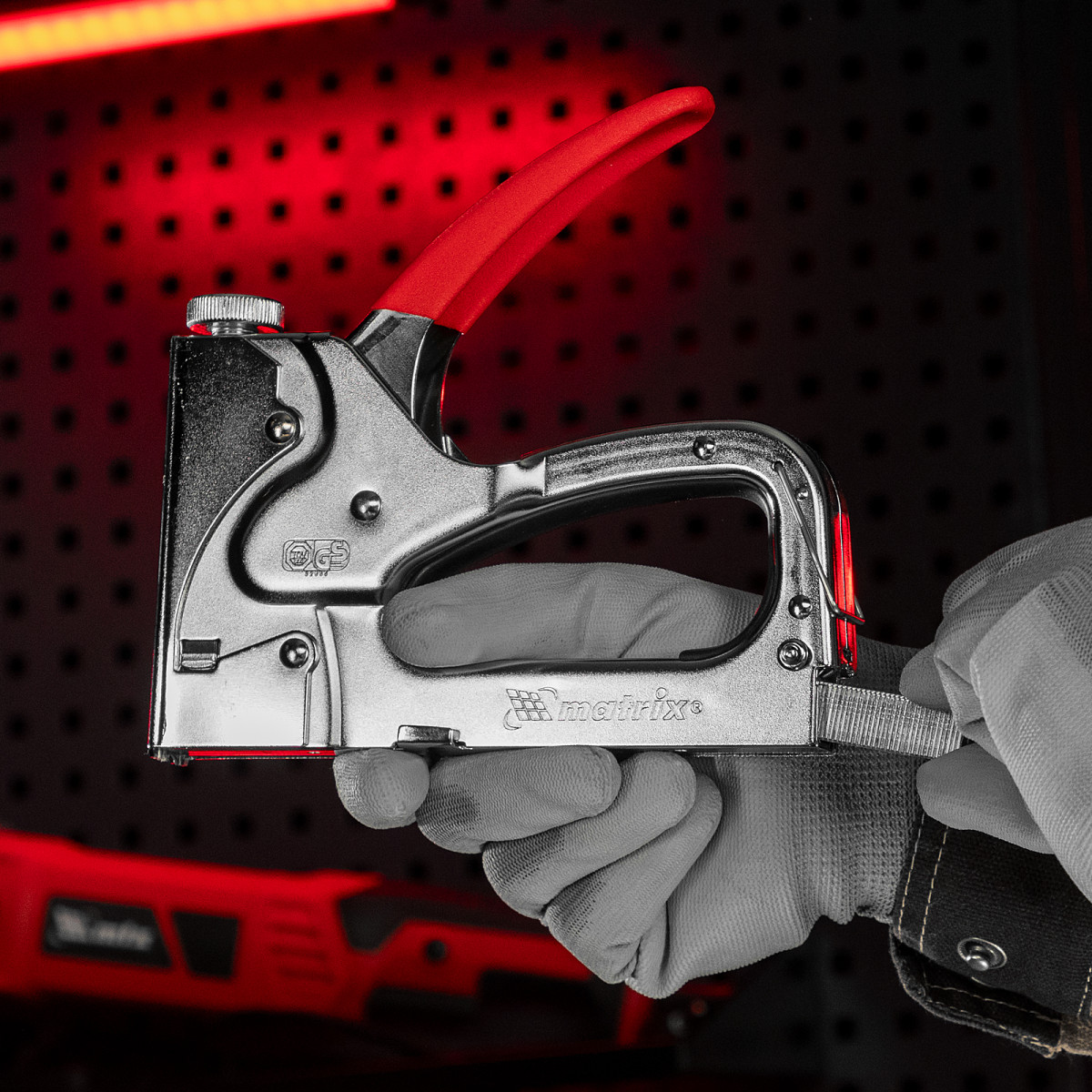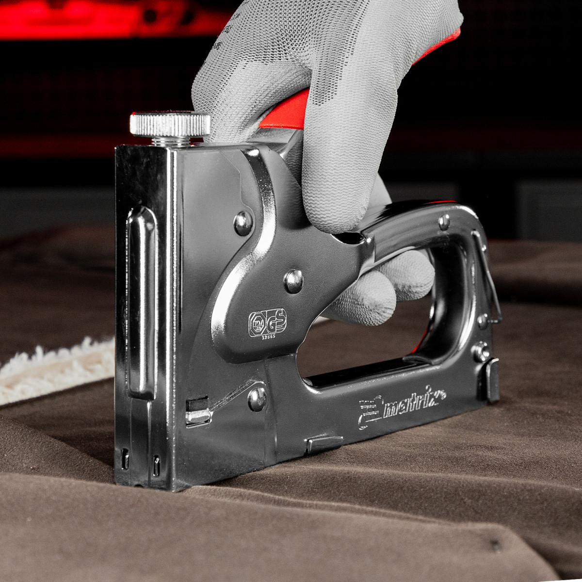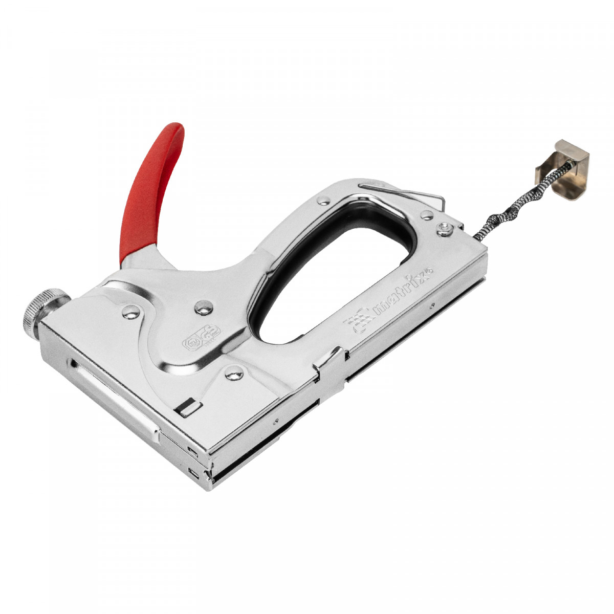 • Безопасное хранение и транспортировка — накидная скоба фиксирует рукоятку, предотвращая случайное срабатывание степлера.