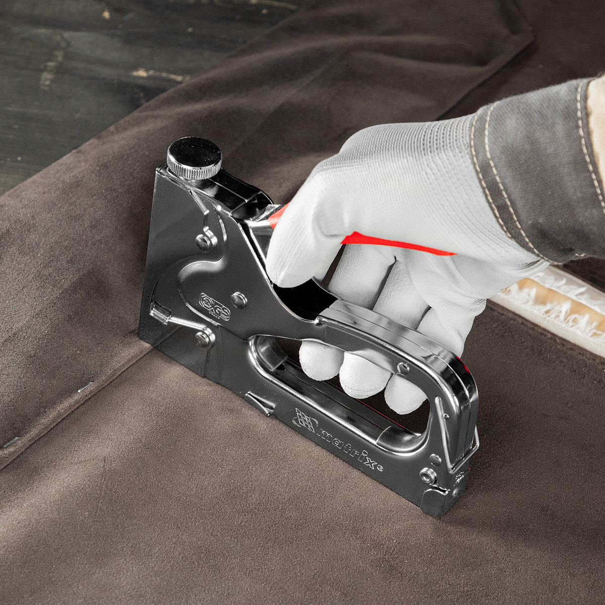 Мебельный 4-функциональный степлер Matrix 40901 имеет универсальный механизм, совместимый со скобами типов 140, 36, 300 и 500 размером 6-14 мм, поэтому его можно использовать не только для сборки и обивки мебели, но и для укладки ковровых покрытий, монтажа низковольтных кабелей, а также выполнения багетных работ. Инструмент применяется для закрепления фанеры, картона, ДВП, ДСП, пленки и утеплителя на деревянном основании. Штампованный стальной корпус устойчив к нагрузкам, поэтому степлер выдерживает интенсивное использование.