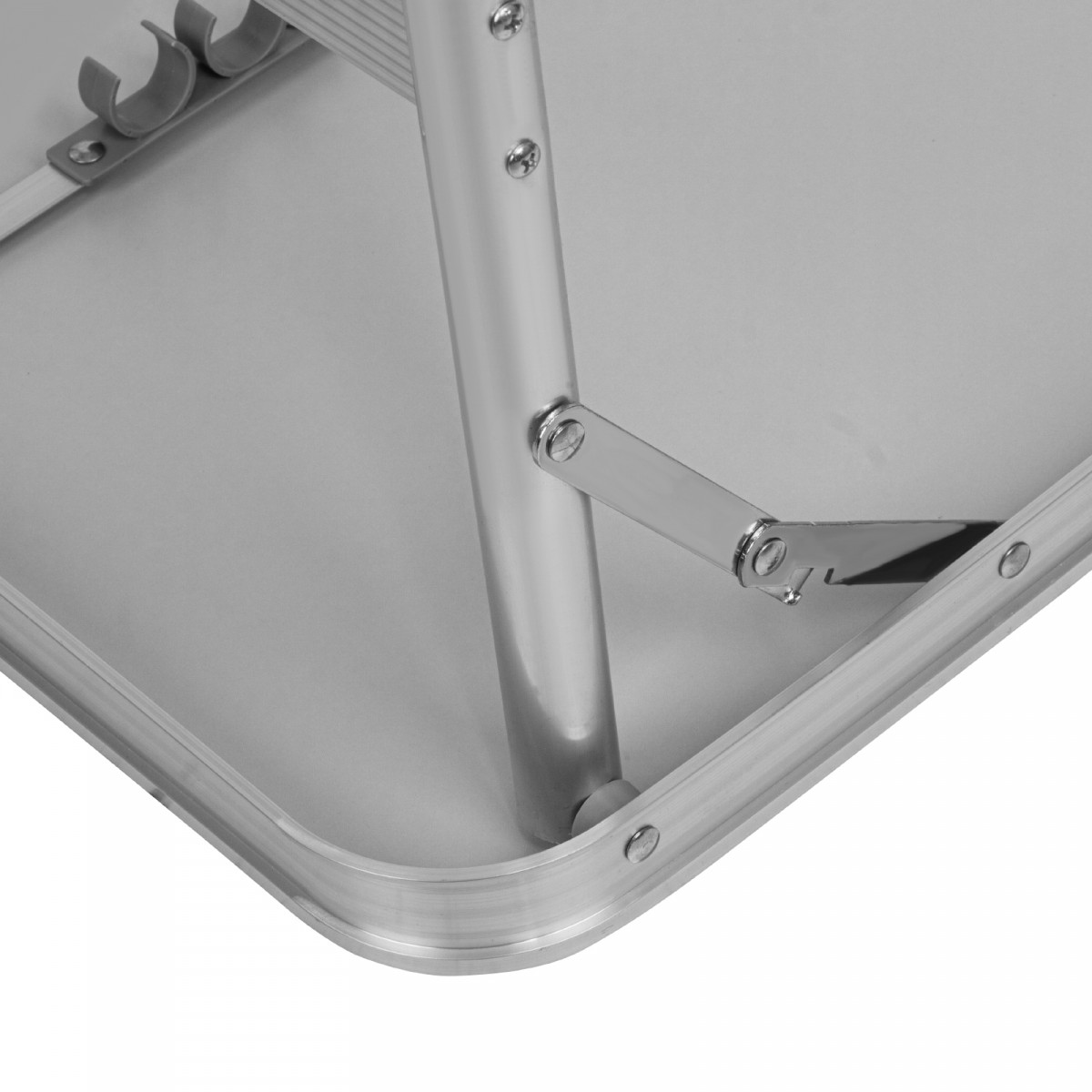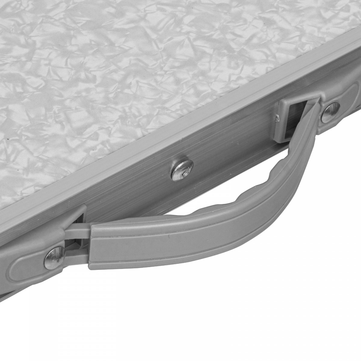 Складной стол Palisad Camping 69582 размером 600 х 450 х 250 / 590 мм, со столешницей из МДФ, позволяет организовать прием пищи для нескольких человек. Пригодится во время отдыха на дачном участке, на пикнике, а также послужит дополнительным столом в случае визита гостей. За счет алюминиевых ножек имеет облегченную конструкцию и весит всего 2,52 кг, поэтому удобен в транспортировке. Благодаря составным ножкам стол можно зафиксировать на высоте 25 или 59 см.