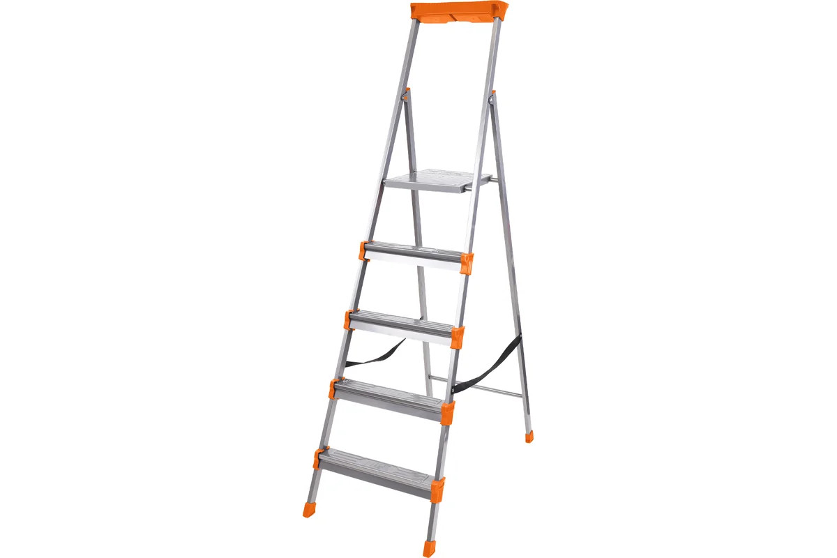 Стальная стремянка Nika СМ5 с массивной площадкой и рифлеными ступеньками позволяет проводить работы на большой высоте. Имеет страховочные стяжки для исключения раскладывания. В конструкции стремянки предусмотрен вместительный лоток для инструментов.