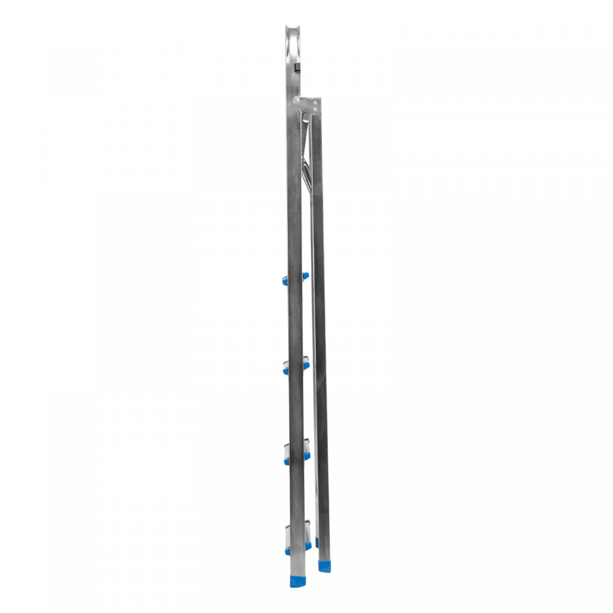 • Компактность и малый вес — лестница весит 5,1 кг, размеры в сложенном состоянии составляют 1520 х 445 х 105 мм, что удобно для хранения и транспортировки.