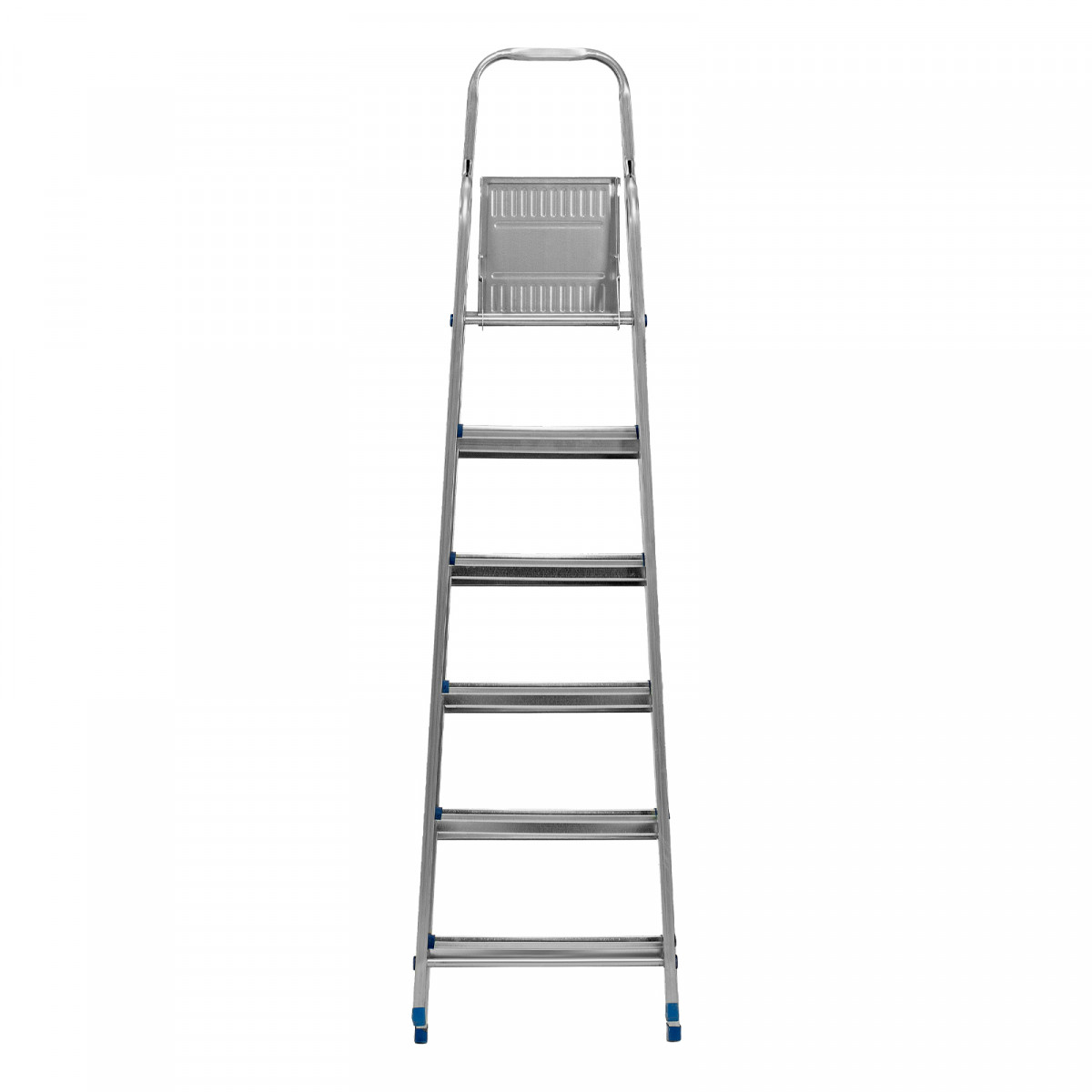 Стальная оцинкованная стремянка Сибртех 97838 с 6 ступенями позволяет повесить полку, картину или шкафчик, достать нужный предмет и решить другие задачи, для которых требуется доступ к предметам на высоте. Рама и ступени из стального профиля выдерживают вес до 120 кг. Расстояние от опорной поверхности до площадки составляет 121 см, при среднем росте пользователя 170 см рабочая высота лестницы — 321 см. Необходимо соблюдать технику безопасности: размещать стремянку только на ровной плоскости и не использовать ее для работы с дрелью, шуруповертом и другим электроинструментом.
