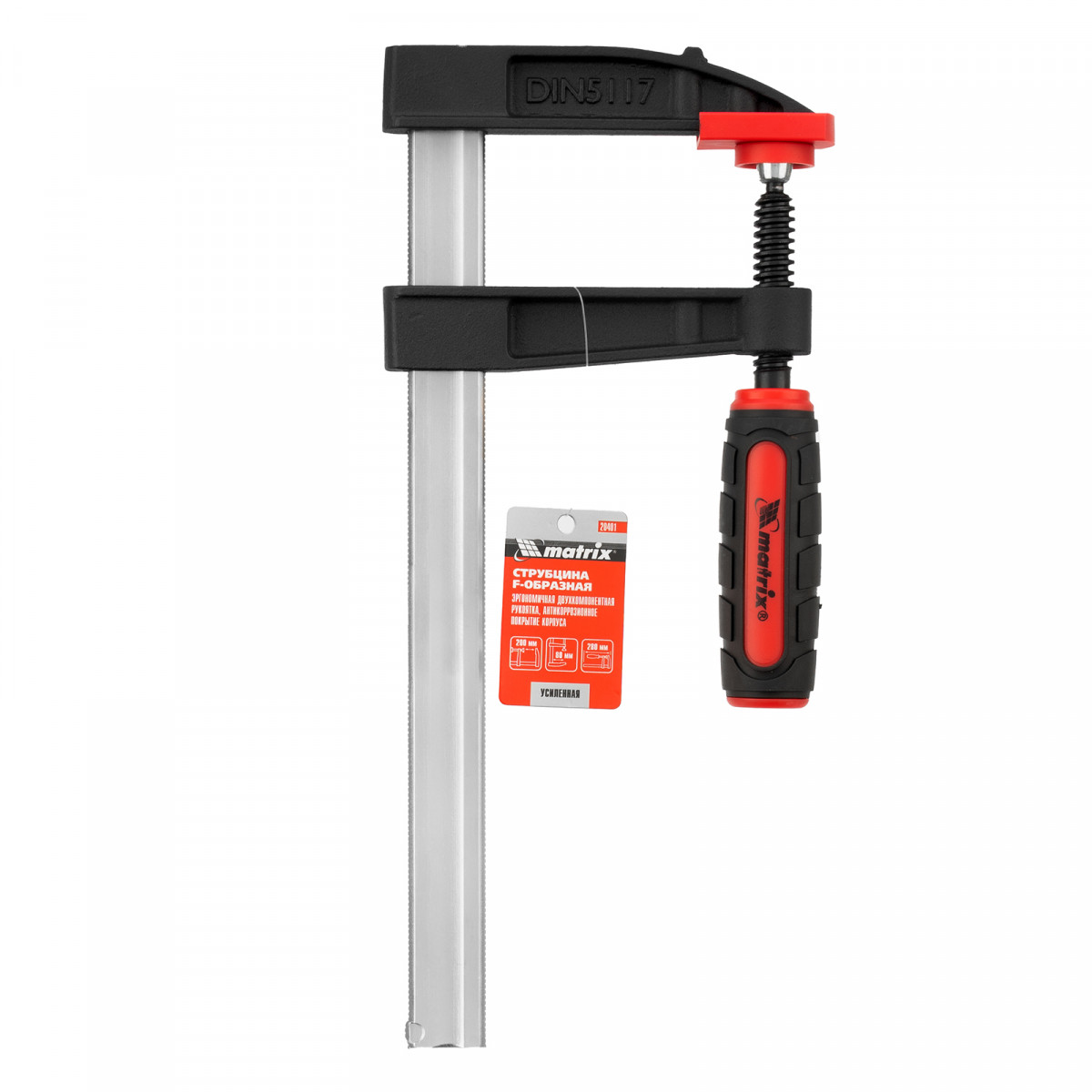 Усиленная F-образная струбцина Matrix 20401 размером 200 х 80 х 280 мм используется для зажима металлических, деревянных и других заготовок для их последующей обработки или сборки. Представляет собой штангу, на которой установлены 2 кронштейна — неподвижный и подвижный. Деталь помещается между ними и прижимается к губкам при помощи винтового зажима с трапециевидной резьбой. Величина захвата регулируется при помощи подвижного кронштейна и может достигать 200 мм. Струбцину используют для проведения слесарных и столярных работ. Металлическая конструкция выдерживает высокую температуру, поэтому инструмент пригодится для выполнения сварочных работ (перед началом необходимо снять пластиковые накладки с губок).