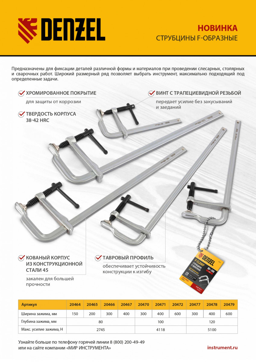 Струбцина F-образная, 80x300мм, кованая Denzel