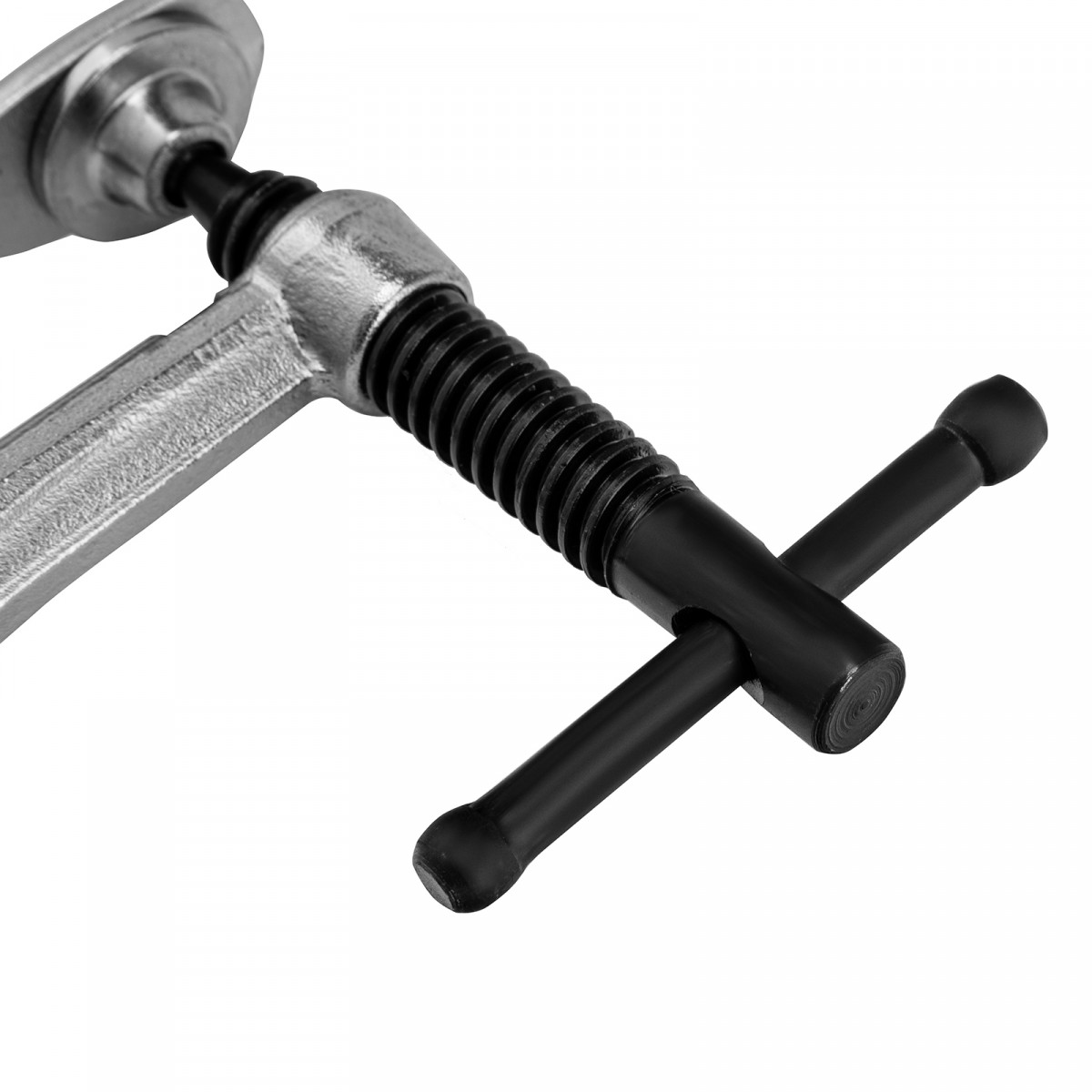 - Хромированное покрытие надежно защищает струбцину от коррозии.