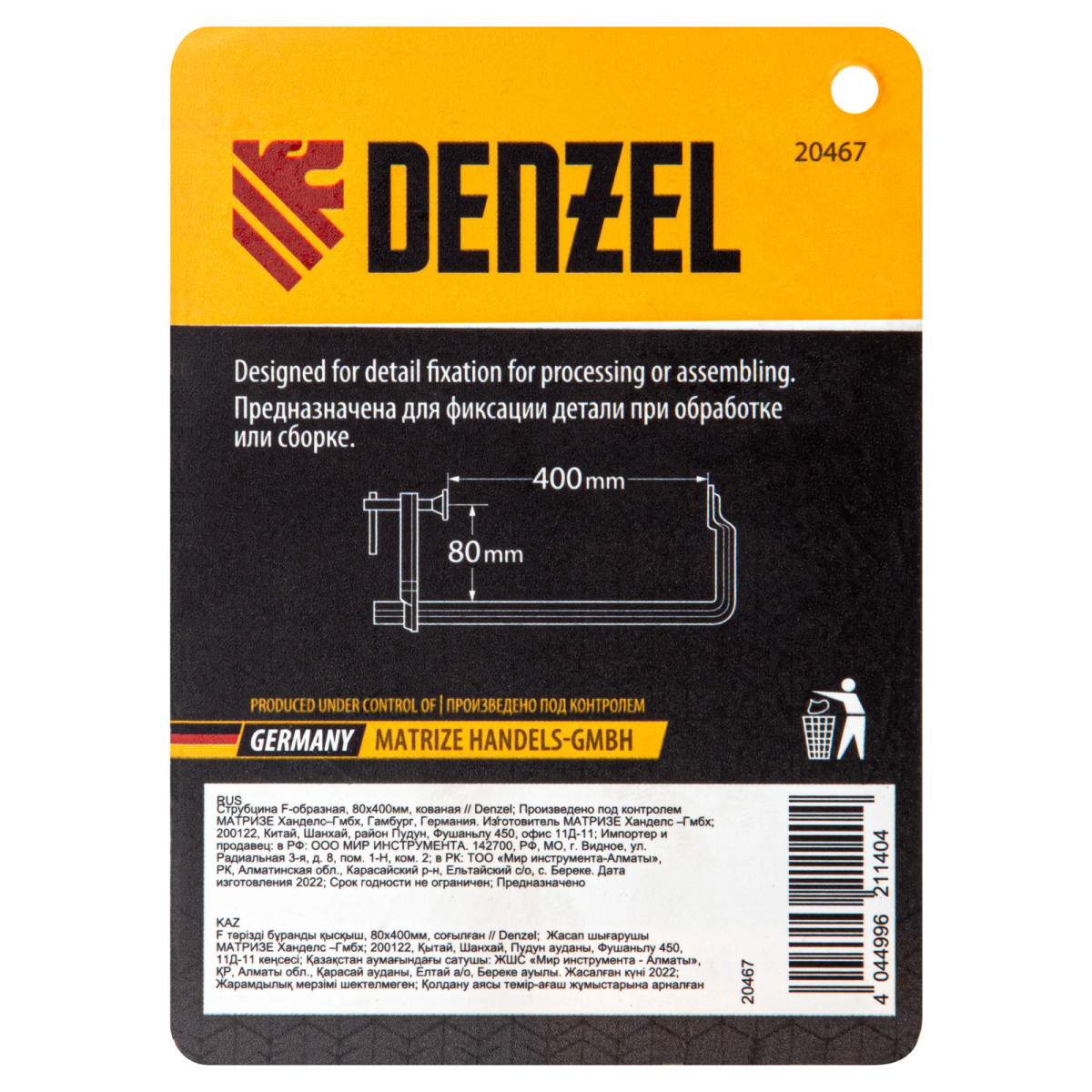 Струбцина F-образная, 80x400мм, кованая Denzel