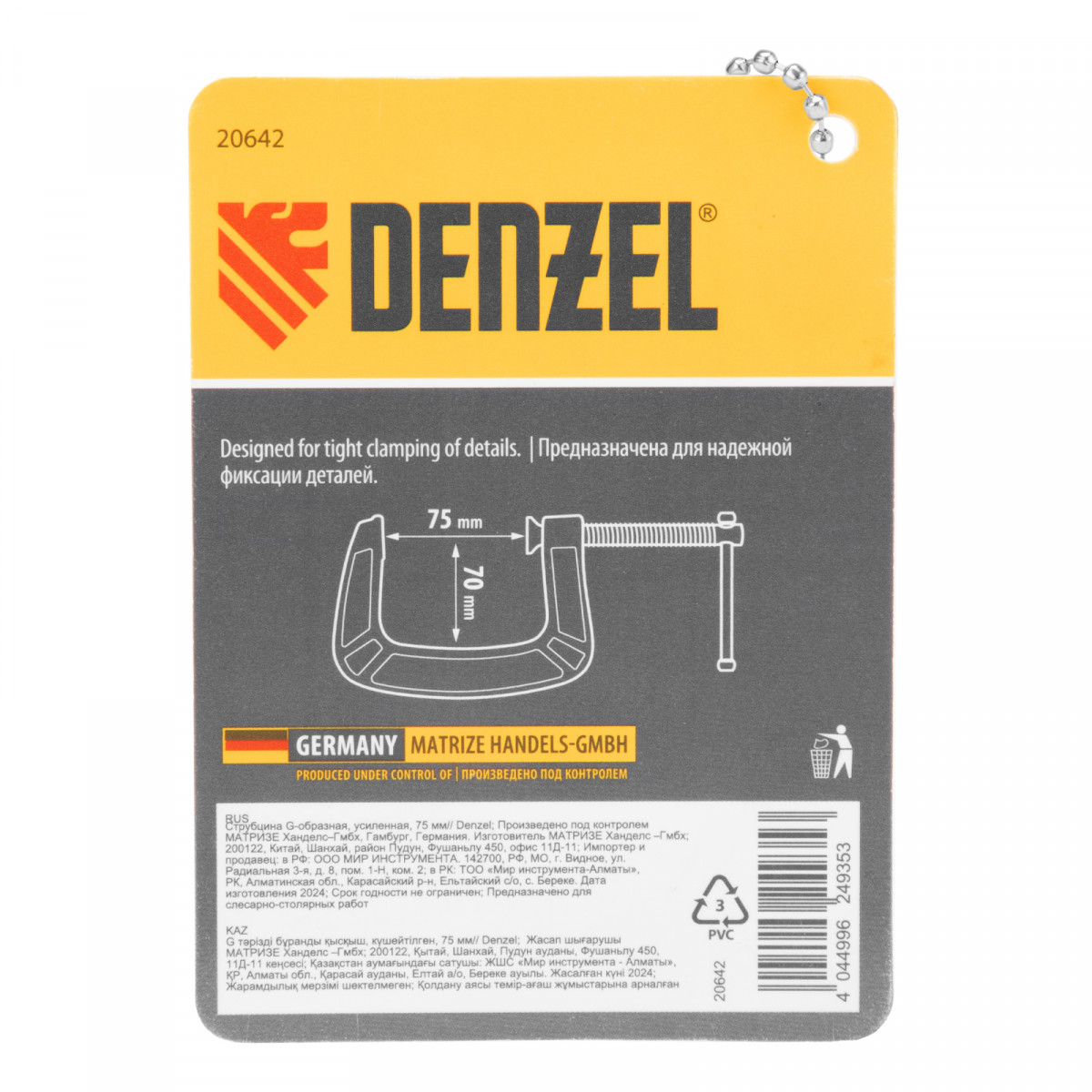 Струбцина G-образная, усиленная, 75 мм Denzel