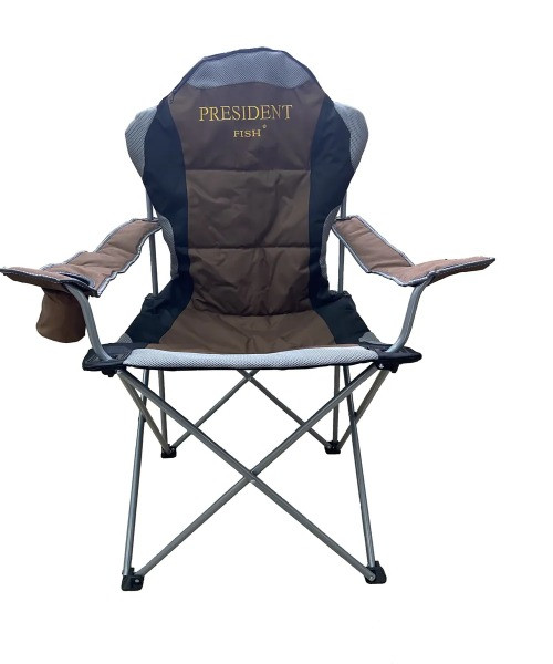 Кресло туристическое "PRESIDENT FISH" отлично подходит для использования его, на рыбалке, охоте, пикнике, в туристическом лагере, и также прекрасно подходит в качестве дачной мебели. Кресло имеет мягкие объемные пoдлoкoтники, c подставкой для стакана, а чехол от стула убирается под молнию сверху спинки стула и образует мягкий подголовник, что создает дополнительное удобство. Складная конструкция кресла в виде тубуса и индивидуальный чехол, позволяет компактно упаковать его для транспортировки.