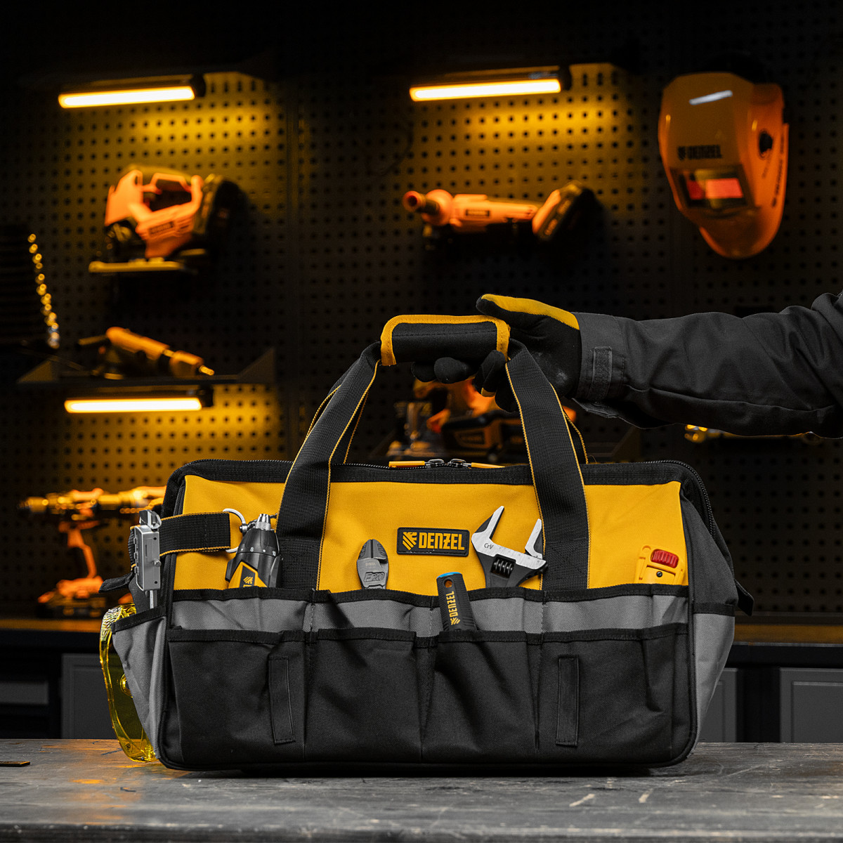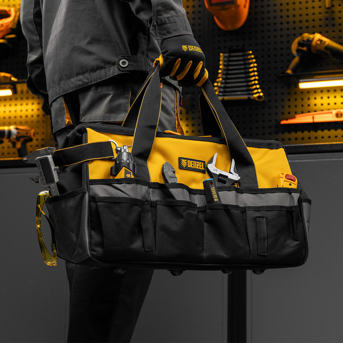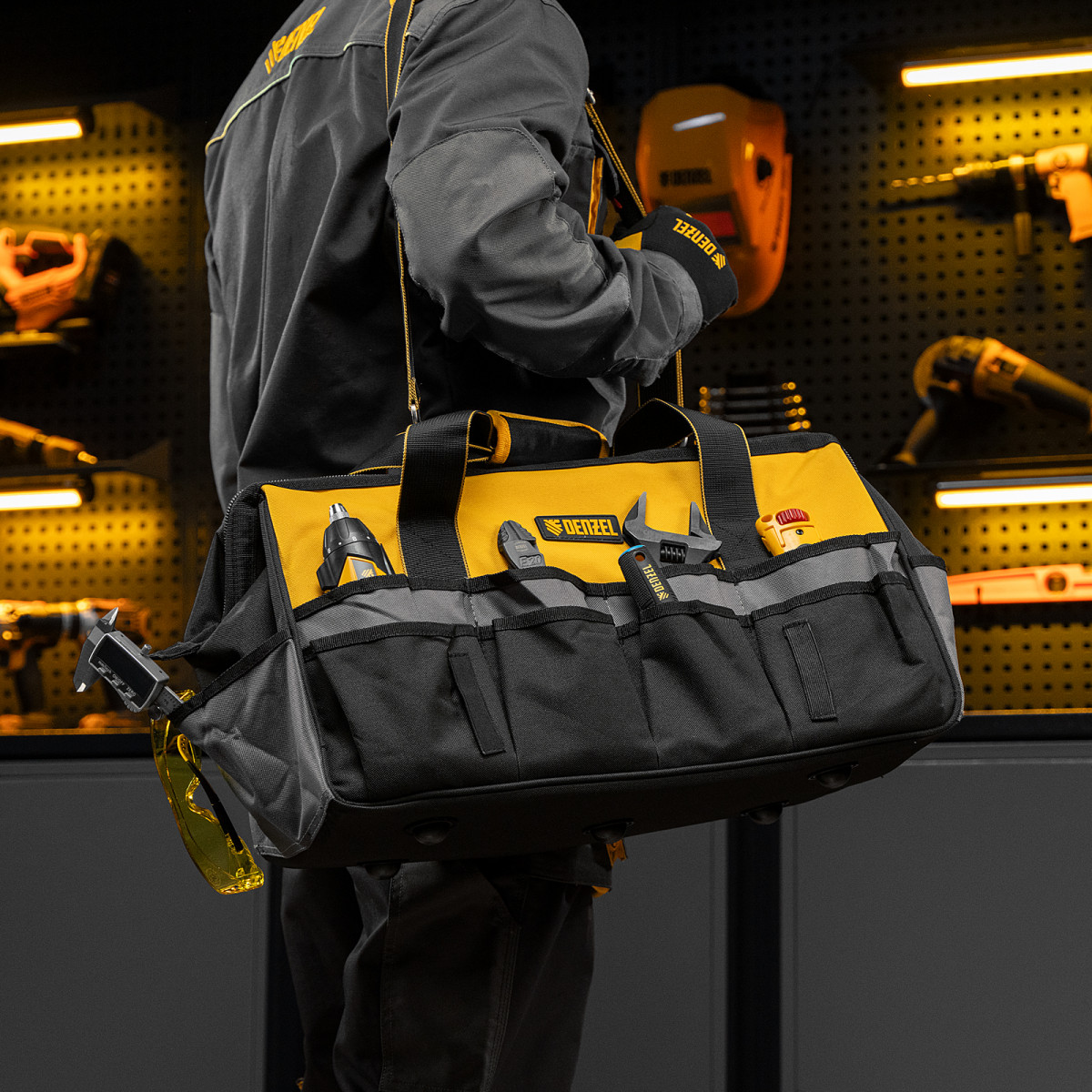 Сумка для инструмента, 500х245х300 мм, 20 карман.,съемный органайз. 10 карман.,наплеч. рем. Denzel