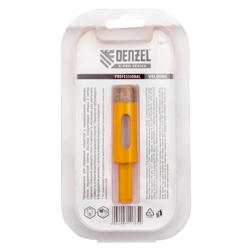 Сверло алмазное по керамограниту, 16 мм, мокрая резка, трехгранный хвостовик Denzel