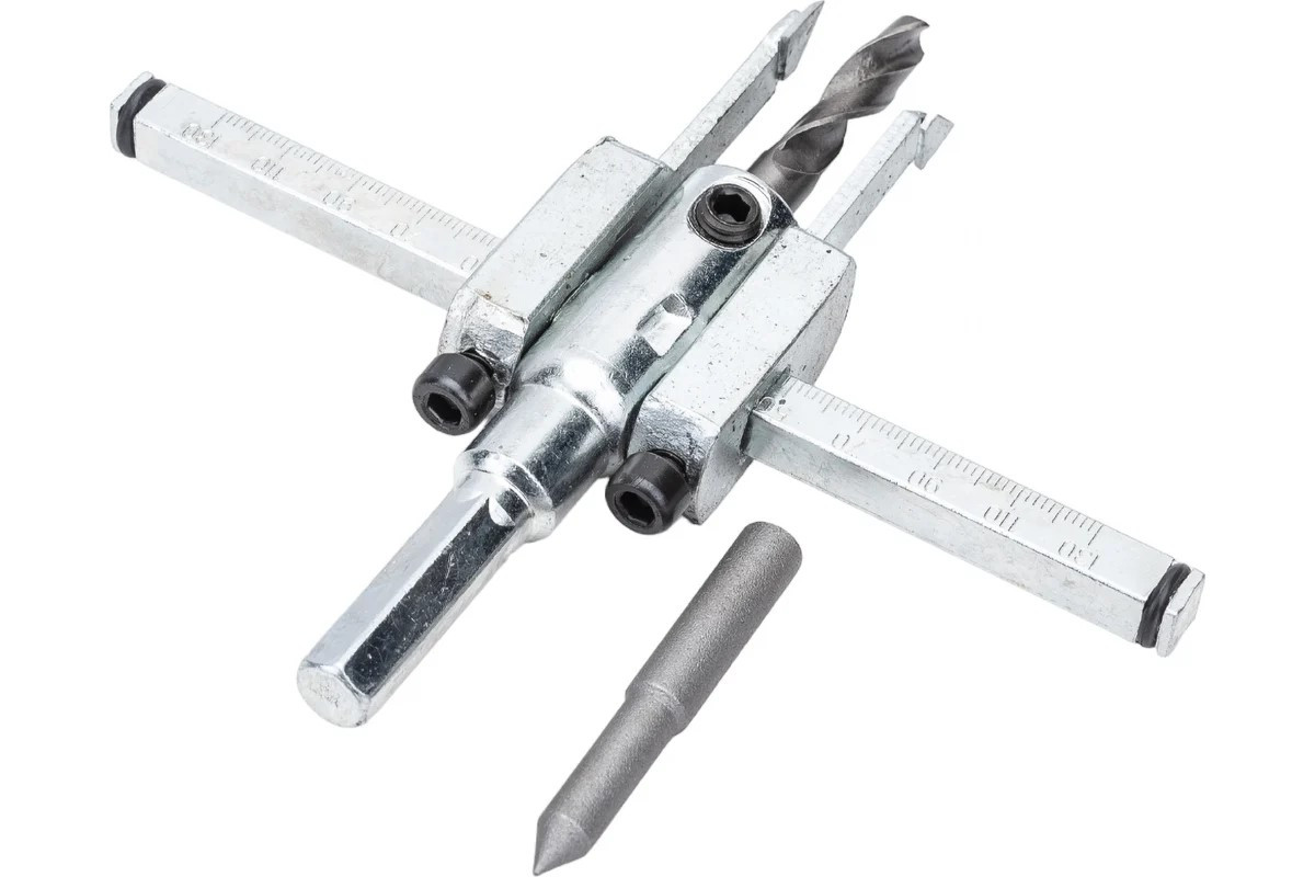 Сверло круговое по дереву предназначено для просверливания отверстий разного диаметра в древесине, клееной фанере, ДСП.Легко регулируется перемещением резцов при помощи ключа (входит в комплект).Диапазон регулировки диаметра отверстия: 30-130 мм. Изготовлено из инструментальной стали.