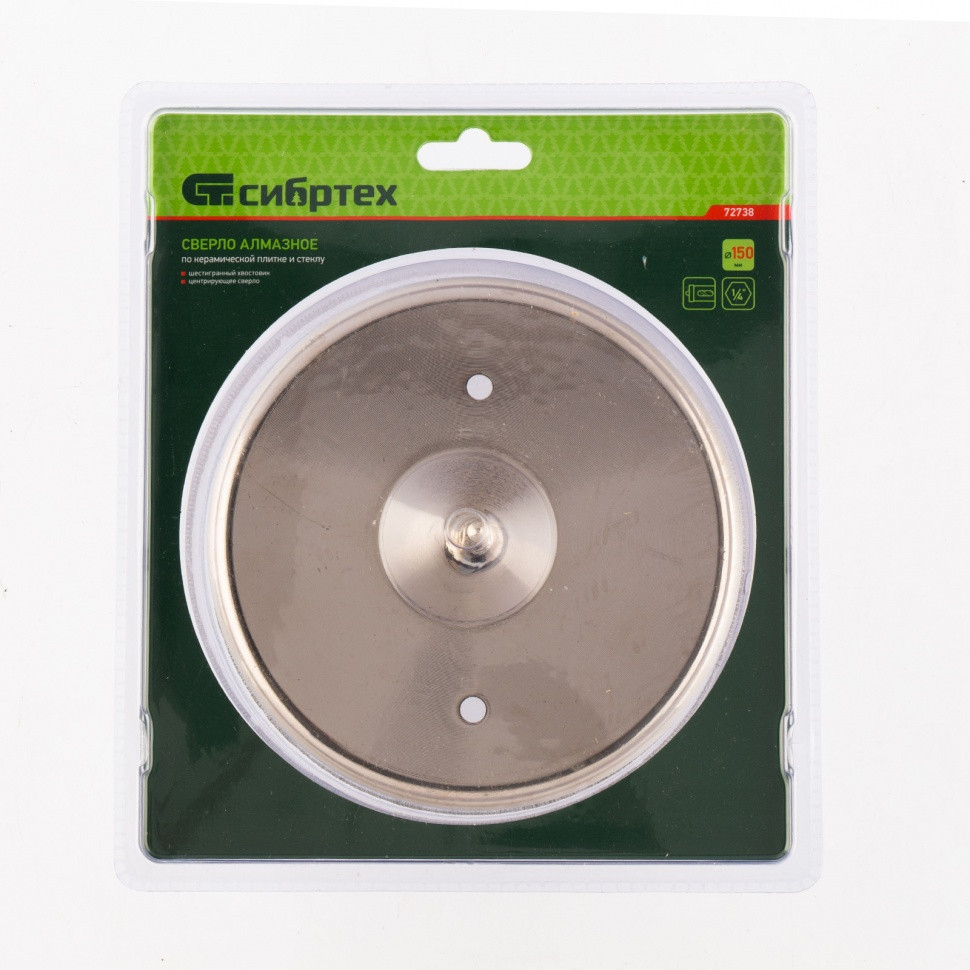 Сверло Сибртех 72738 размером 150 х 55 м, с шестигранным хвостовиком и центрирующим сверлом, позволяет получать отверстия в керамической плитке и стекле. Его устанавливают на дрель или шуруповерт, рекомендуемый диапазон рабочих оборотов 350-700 об/мин. Оснастка используется при выполнении бытовых ремонтных и отделочных работ.