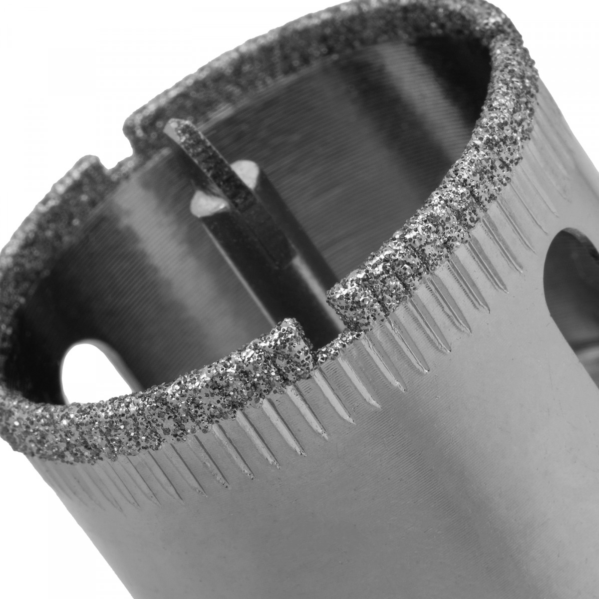 • Точное позиционирование — центрирующее сверло быстро заглубляется в материал, не давая коронке сдвигаться во время сверления.