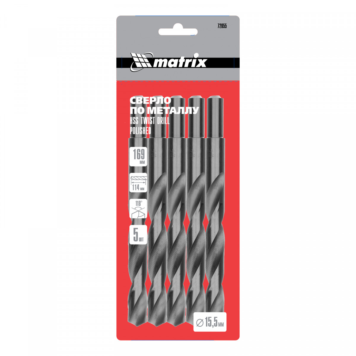 Сверло по металлу, 15.5 мм, полированное, HSS, 5 шт, цилиндрический хвостовик Matrix