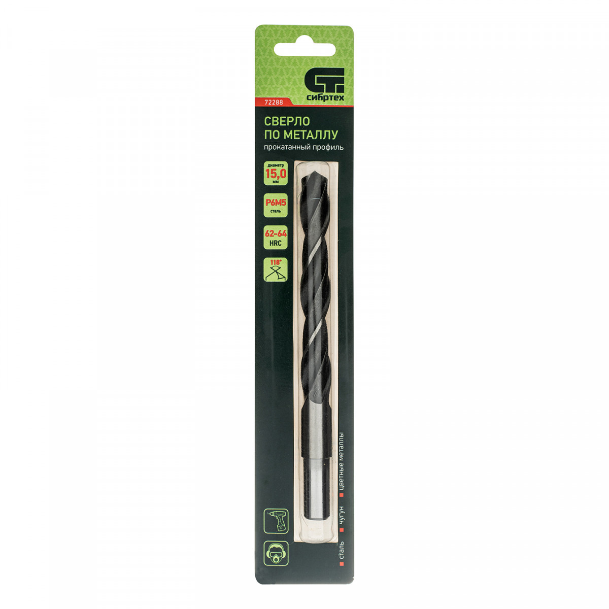 Сверло по металлу, 15 мм, Р6М5 Сибртех