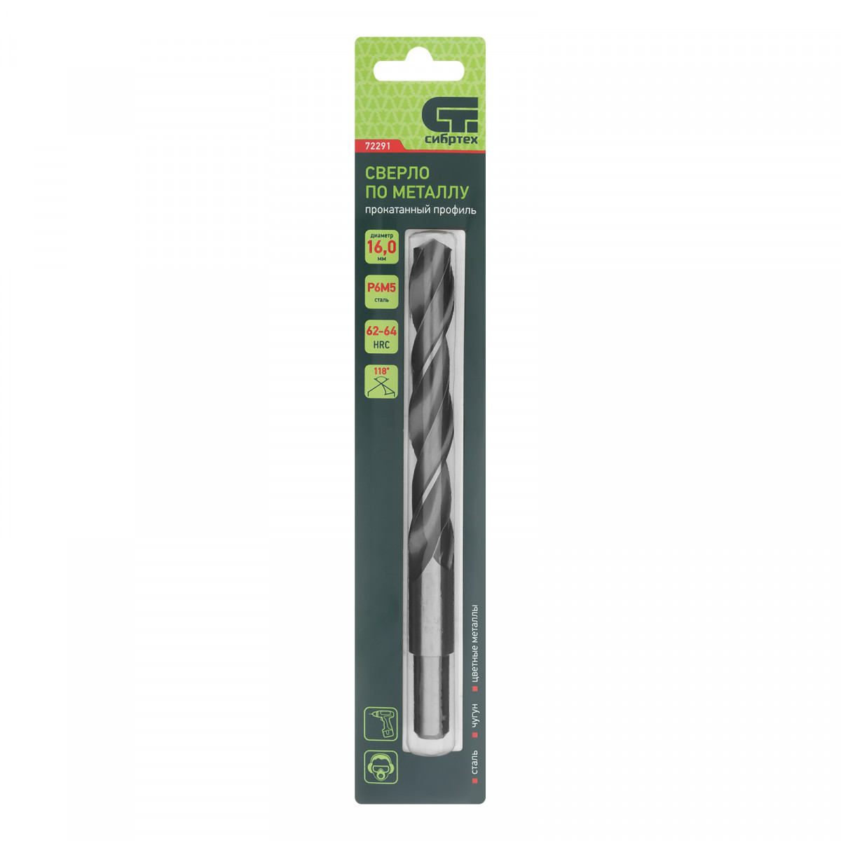 Сверло по металлу Сибртех 72291 диаметром 16,0 мм, имеет угол заточки 118°, оптимальный для получения отверстий в черных и тяжелых металлах, в том числе стали, чугуне и твердой бронзе. Отличается наиболее выгодной стоимостью по сравнению с другими моделями из стали P6M5. Используется для выполнения монтажно-сборочных работ, будет полезно в быту.