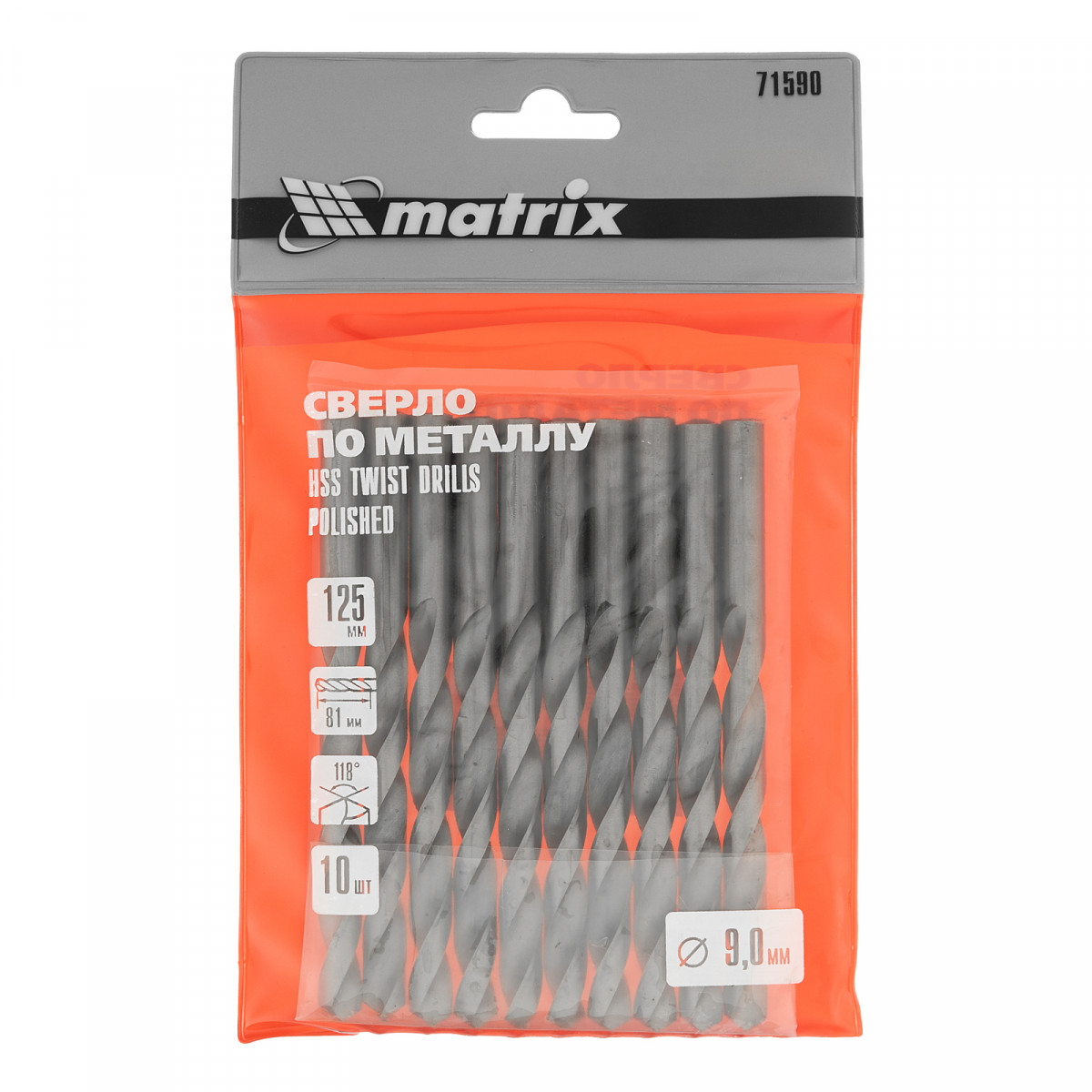 Сверло по металлу, 9 мм, полированное, HSS, 10 шт, цилиндрический хвостовик Matrix