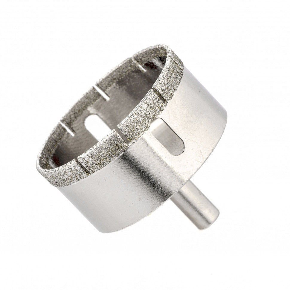 Сверло Сибртех 726607 размером 60 х 55 мм, с цилиндрическим хвостовиком, используется для получения ровных отверстий без сколов в стекле и керамической плитке. Устанавливается в патрон дрели или шуруповерта, работающих в диапазоне 350-700 об/мин. Во время работы рекомендуется применять водяное охлаждение — это существенно увеличит ресурс оснастки. Использование кондуктора (арт. 72830) позволяет точно позиционировать сверло и облегчает засверливание. Оснастка подходит для выполнения работ небольшого объема и рекомендована для использования в быту.