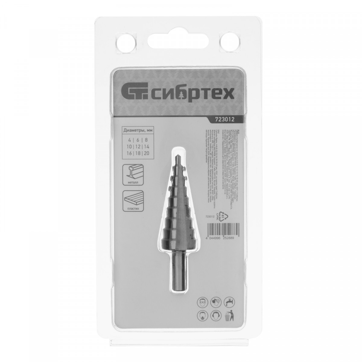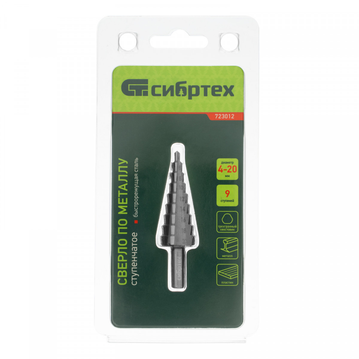 Сверло ступенчатое по металлу 4-6-8-10-12-14-16-18-20 мм, 4241 Сибртех