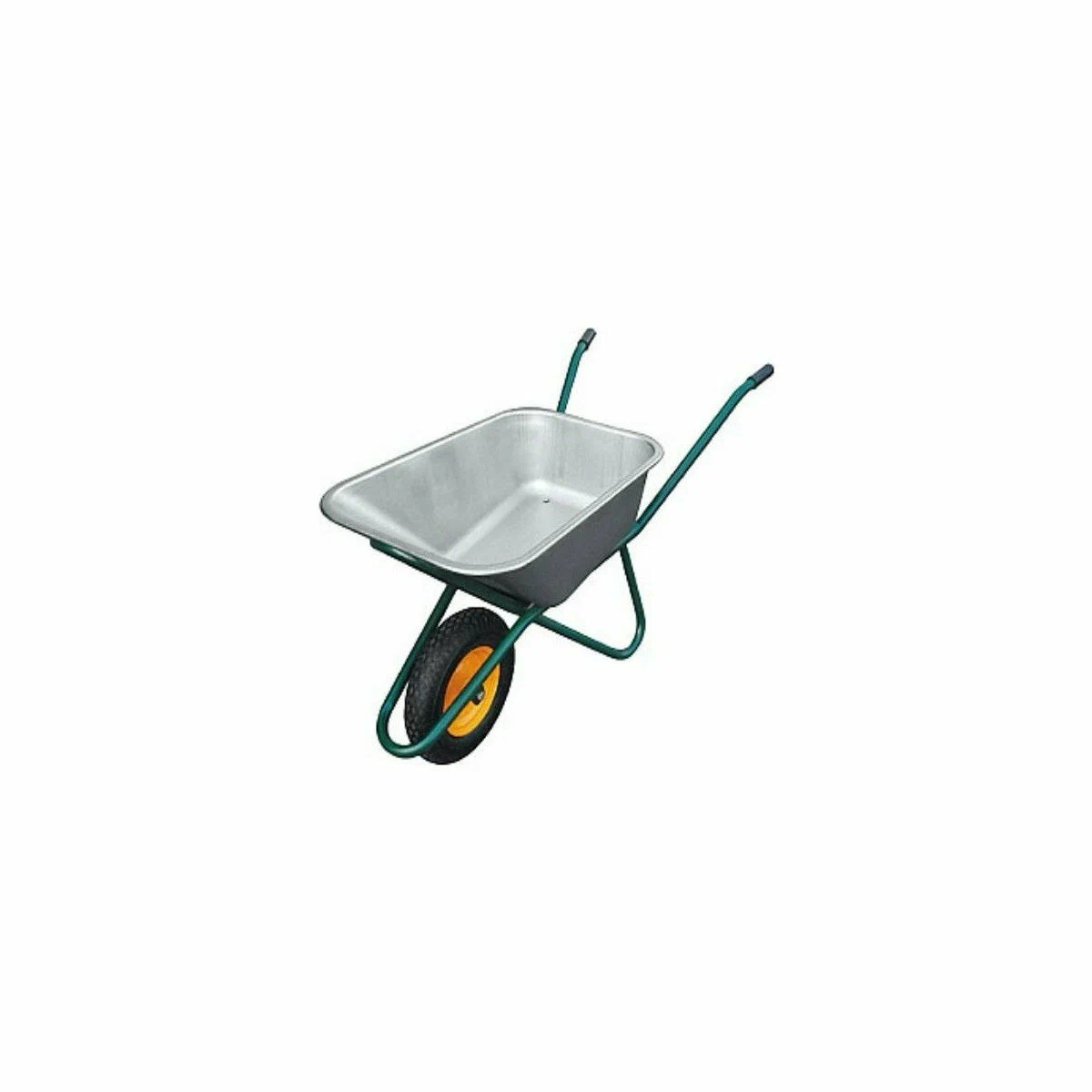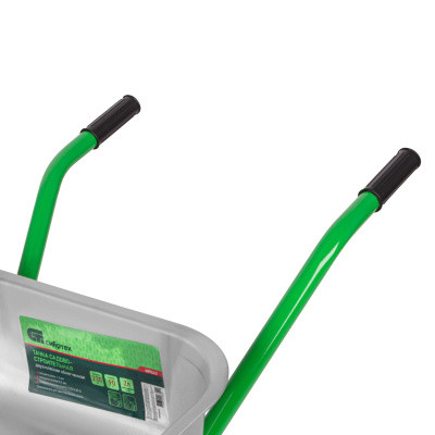 Тачка садов-строительная одноколесная предназначена для перевозки строительных материалов, а так же различных грузов при проведении сельскохозяйственных работ. Грузоподъемность 200 кг, объем кузова 90 л. Усиленная рама с подпятником выполнена из трубы 32 мм, толщина стенки 1,5 мм, окрашена порошковой эмалью. Дуга защиты колеса не только обеспечивает безопасность работы, но и удобство при разгрузке. Упор обеспечивает удобство при разгрузке. Кузов изготовлен из оцинкованной стали, толщина 0,9 мм. Опора кузова и сварные кронштейны колеса обеспечивают большую грузоподъемность. Тачка комплектуется пневматическим колесом с камерой. Наличие двух шариковых подшипников в колесе обуславливает более легкое перемещение тачки с грузом. Диск колеса сварной.