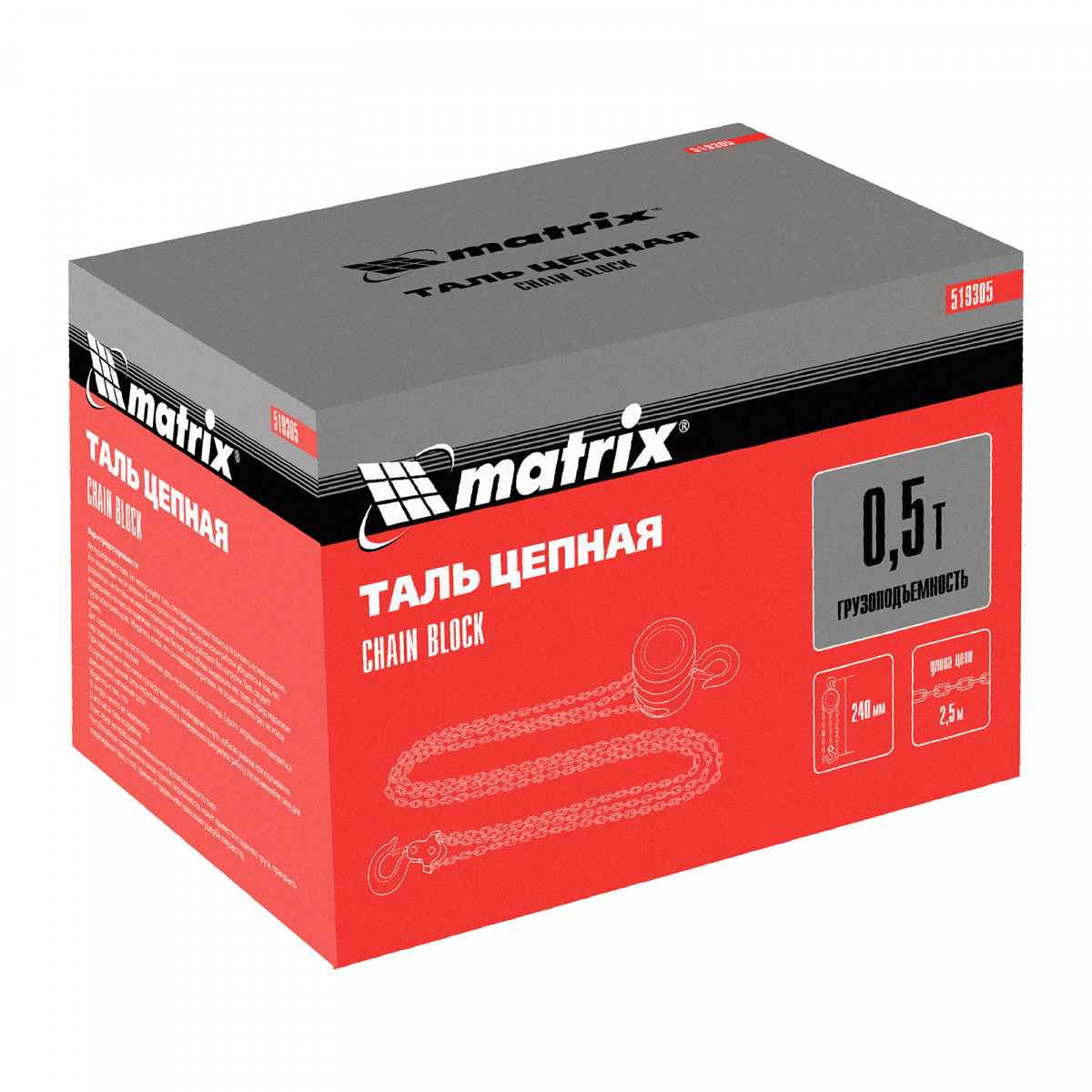 Таль цепная, 0.5 т, H подъема 2.5 м, расстояние между крюками 240 мм Matrix