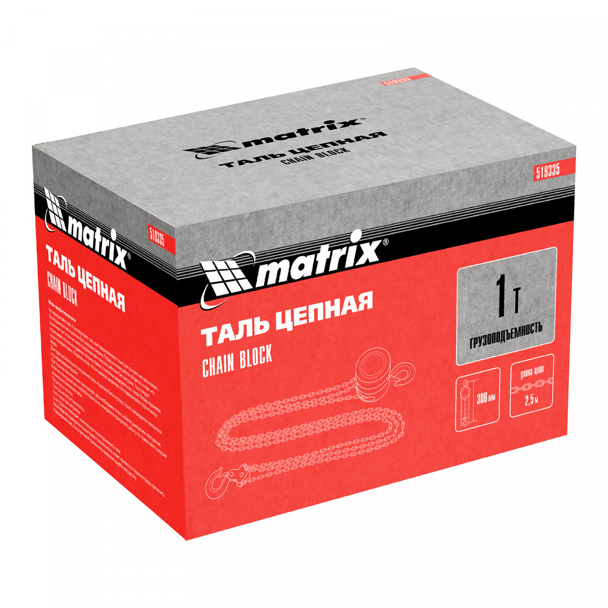 Таль цепная, 1 т, H подъема 2.5 м, расстояние между крюками 300 мм Matrix