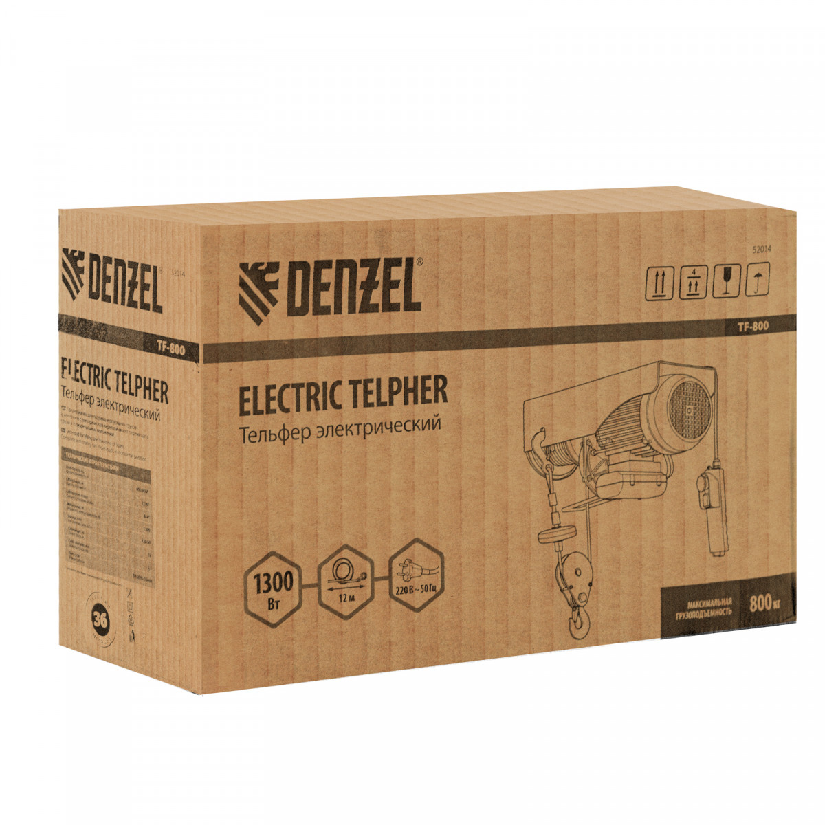 Тельфер электрический TF-800, 0.8 т, 1300 Вт, высота 12 м, 8 м/мин Denzel