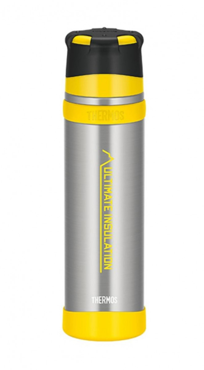Термос Thermos FFX-901 специально для любителей экстремальных видов спорта и отдыха. Двойная винтовая пробка позволяет наливать напиток, не выкручивая её полностью, так как в ней предусмотрены специальные направляющие пазы для выливания содержимого — достаточно повернуть внутреннюю пробку на 180 градусов. Рельефная крышка и специальное силиконовое кольцо на корпусе термоса способствуют легкому открыванию и закрыванию термоса. Эргономичная форма дополняется съёмной противоскользящей силиконовой насадкой на дно термоса для устойчивости при размещении на гладких поверхностях. Силиконовые детали выполнены в ярко-желтом сигнальном цвете специально для облегчения поиска термоса среди травы или снега. Современный дизайн термоса поддержан классическим стальным цветом корпуса. Колба и корпус изготовлены из высококачественной пищевой нержавеющей стали 18/8 AISI 304 Stainless Steel, устойчивой к механическим повреждениям и инертной по отношению к содержимому.