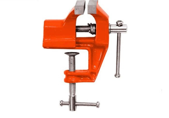 Универсальные тиски. Предназначены для закрепления металлических и деревянных заготовок с целью последующей их обработки. Используются для фиксации небольших изделий. Зажим осуществляется горизонтально. Надежную фиксацию к столешнице обеспечивает ручной винт. Внутренняя часть рабочих губок ровная. Длина губок 50 мм. Фиксируются детали вручную поворотным рычагом на боковой поверхности тисков. Поверхность нерабочих частей тисков окрашена.