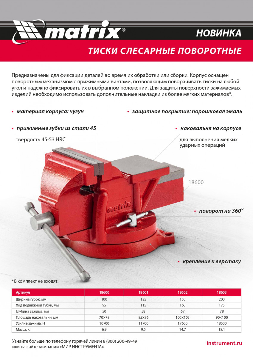 • Коррозионная стойкость — тиски покрыты защитной порошковой эмалью.