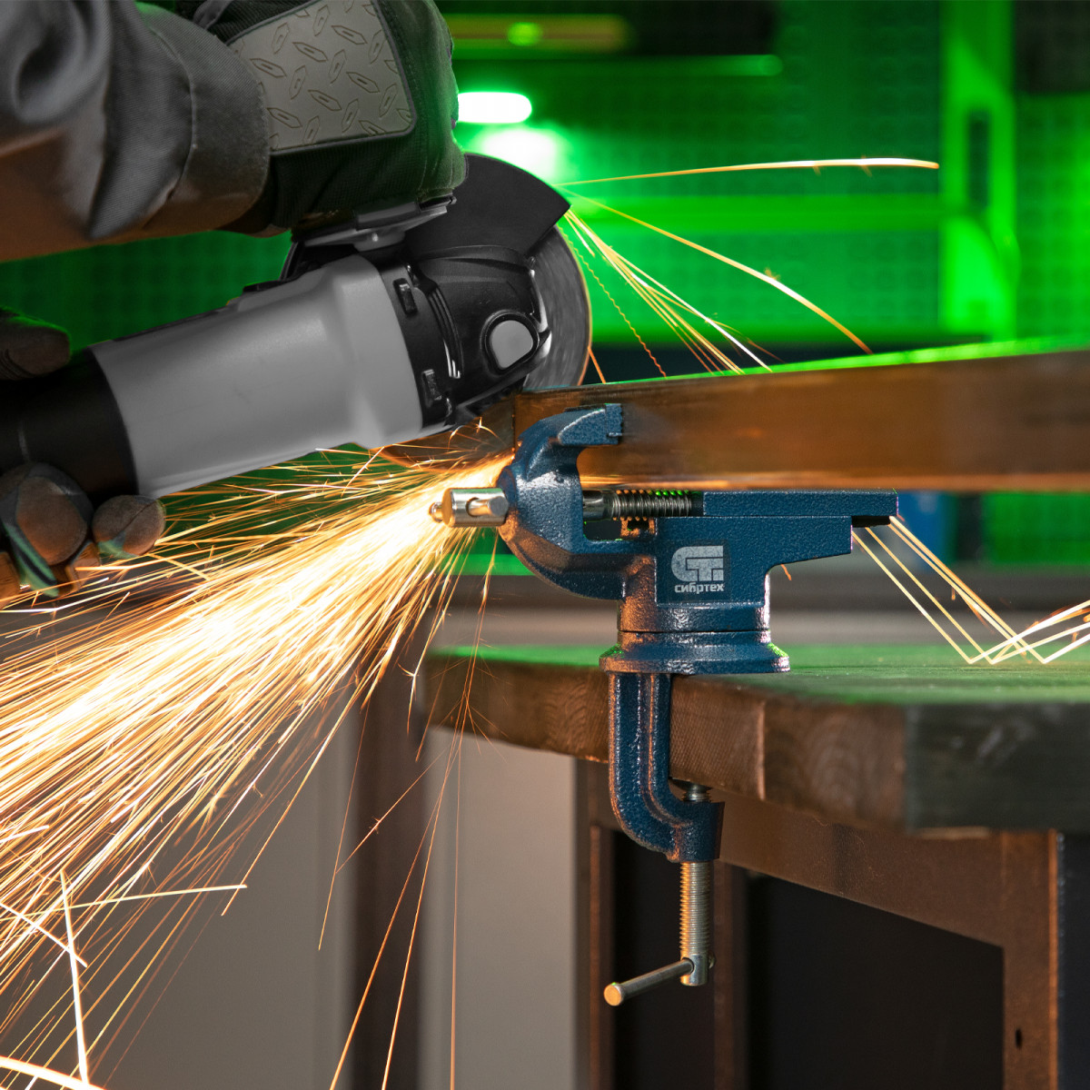 - Винтовой зажим позволяет быстро устанавливать и снимать тиски, поэтому их можно использовать на различных рабочих местах.