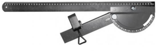 Для измерения длин и углов, а также для установки позиции реза при использовании с электролобзиком. В комплект входит струбцина.