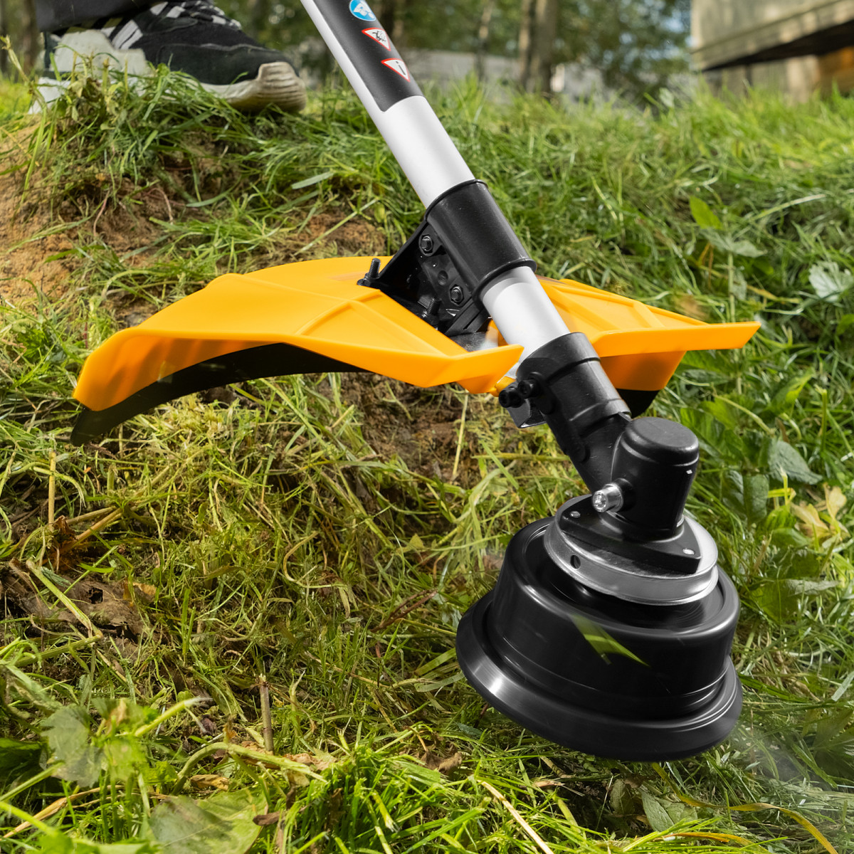 - Разгрузка позвоночника — одноплечевой ремень перераспределяет вес триммера, обеспечивая комфорт во время длительной работы.