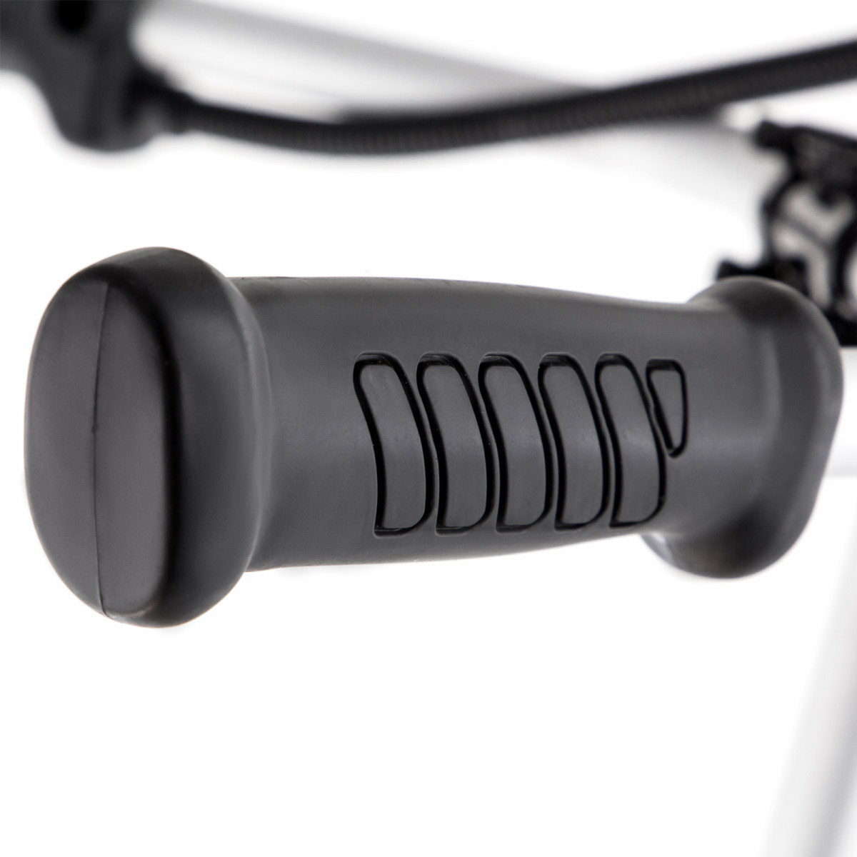 - Удобное управление — асимметричный велосипедный руль с пластиковыми рукоятками обеспечивает надежный захват и естественное положение рук.